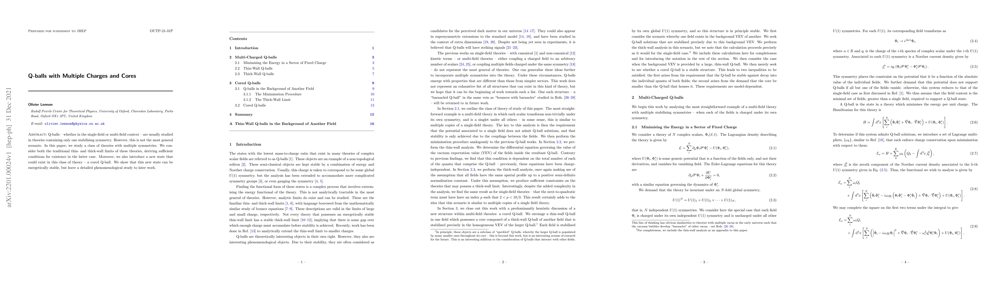 Q-balls -- whether in the single-field or multi-field context -- are usually studied in theories containing only one stabilising symmetry. However, this is not the most general scenario. In this paper, we study a class of theories with multiple symmetries. We consider both the traditional thin- and thick-wall limits of these theories, deriving sufficient conditions for existence in the latter case. Moreover, we also introduce a new state that could exist in this class of theory -- a cored Q-ball. We show that this new state can be energetically stable, but leave a detailed phenomenological study to later work.