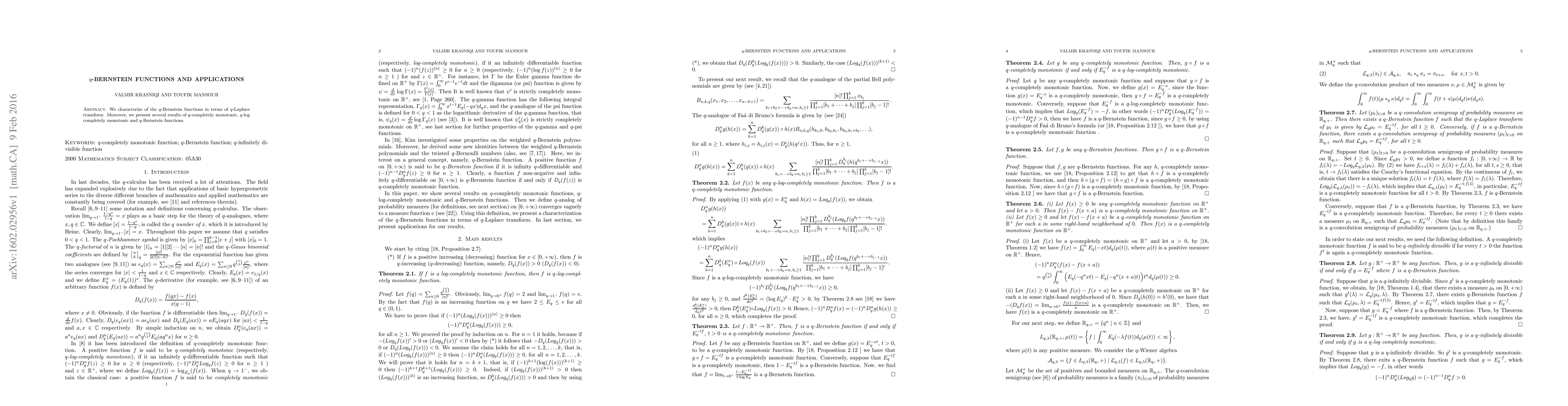 This paper characterizes $q$-Bernstein functions using the $q$-Laplace transform and presents results on $q$-completely monotonic and $q$-log completely monotonic functions.