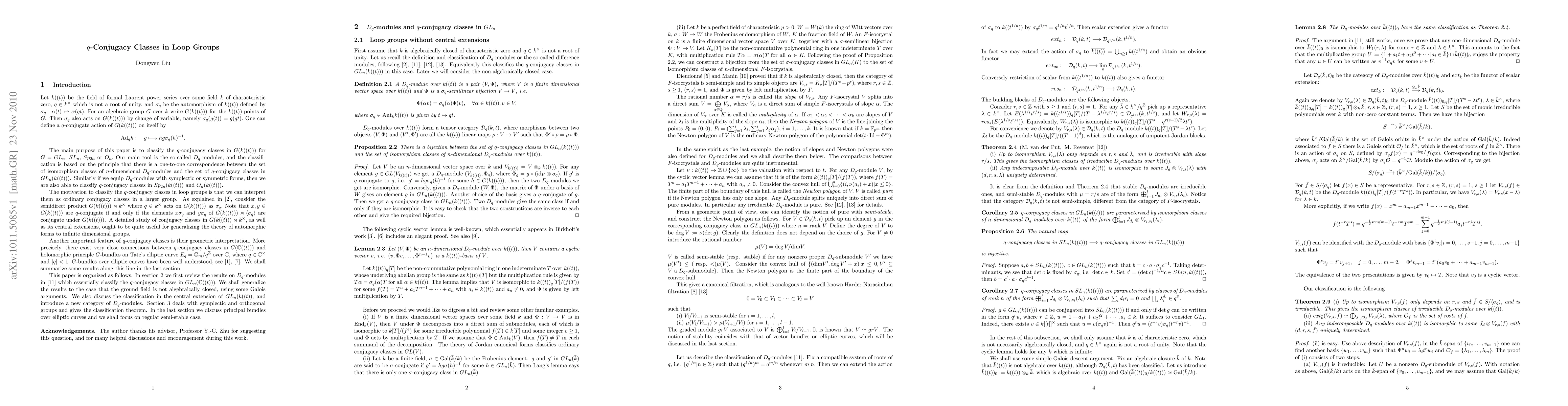 We classify twisted conjugacy classes in loop groups, restricted to classical groups. The main tool we used is the so-called D_q module, an object which is related to vector bundles over elliptic curves.