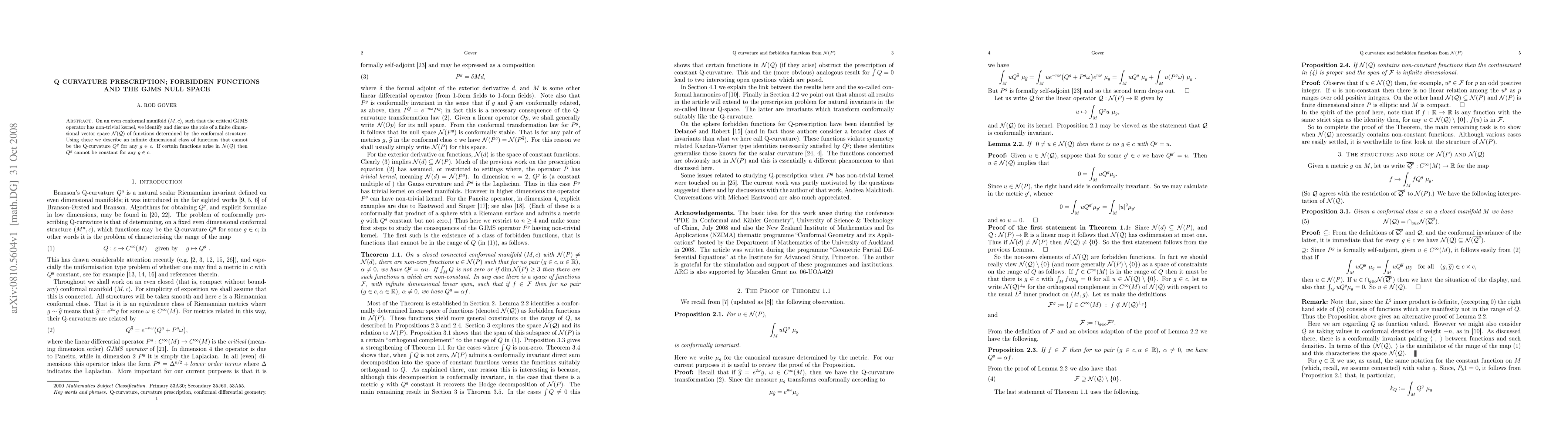 This paper identifies a finite-dimensional vector space $N(Q)$ of functions on an even conformal manifold where the critical GJMS operator has a non-trivial kernel, and describes an infinite-dimensional class of forbidden functions that cannot represent the Q-curvature $Q^g$ for any metric $g$. It also shows that if certain functions are in $N(Q)$, then $Q^g$ cannot be constant for any $g$.