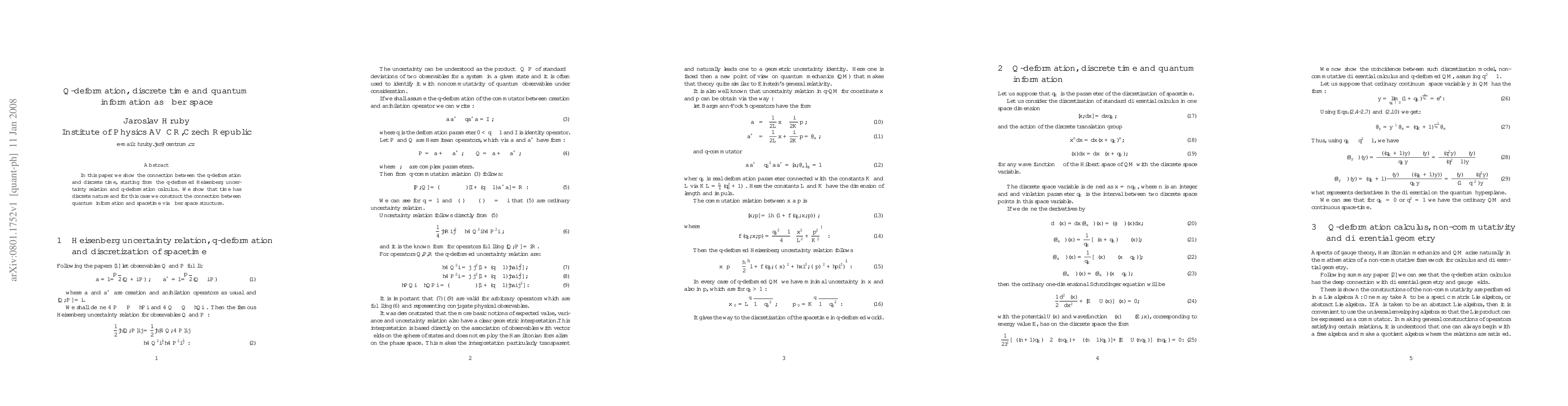 This paper explores the link between q-deformation and discrete time, demonstrating that time is inherently discrete, and constructs a connection between quantum information and spacetime through a fiber space structure, starting from the q-deformed Heisenberg uncertainty relation.
