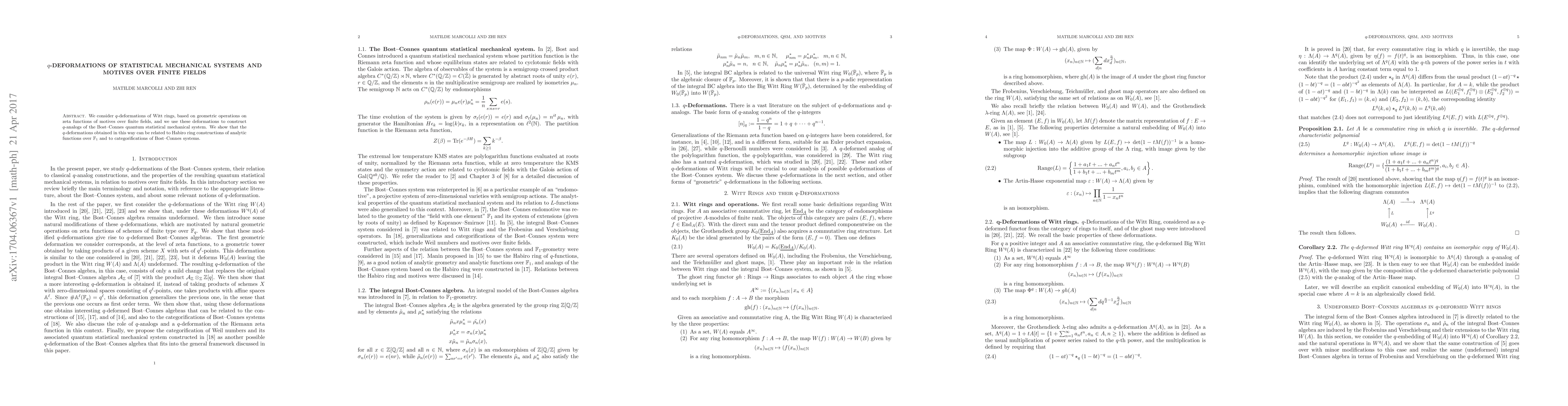 This paper explores q-deformations of Witt rings through geometric operations on zeta functions of motives over finite fields, constructing q-analogs of the Bost-Connes quantum statistical mechanical system and linking these to Habiro ring constructions and categorifications of Bost-Connes systems.