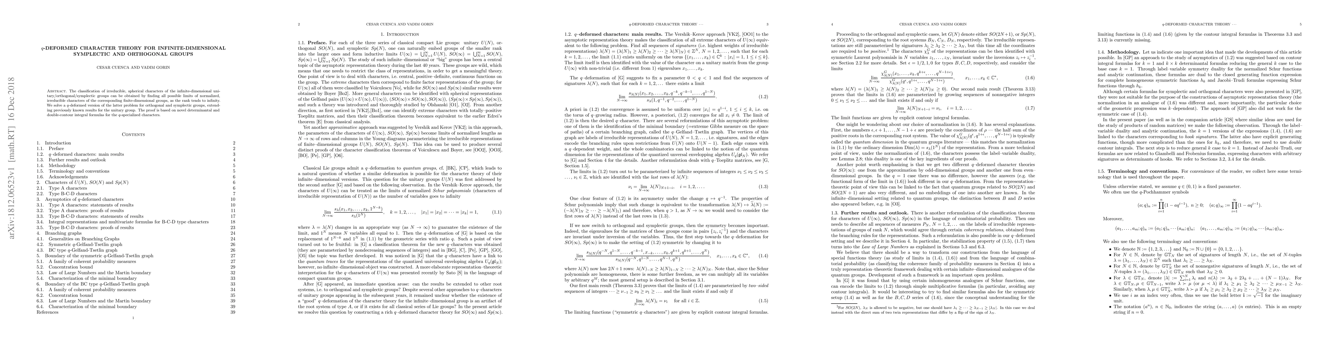 The paper classifies irreducible, spherical characters of infinite-dimensional symplectic and orthogonal groups using limits of finite-dimensional group characters. It solves a q-deformed version of this problem, extending prior unitary group results, utilizing new determinantal and double-contour integral formulas for q-specialized characters.