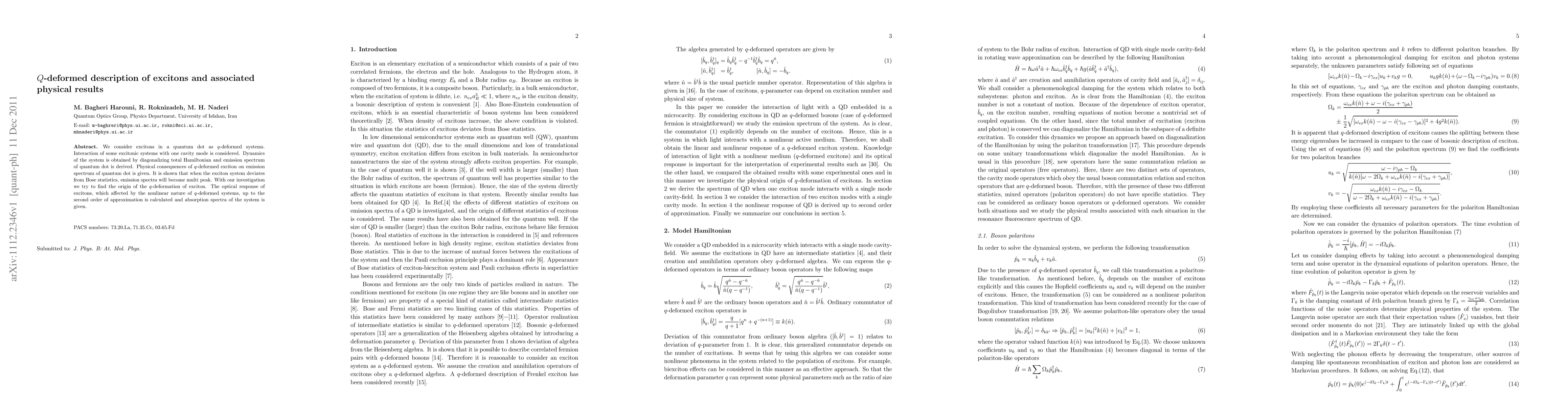 Researchers investigate how a 'q-deformed' exciton system in quantum dots affects its emission spectrum, finding that it leads to multi-peak emission spectra under certain conditions.