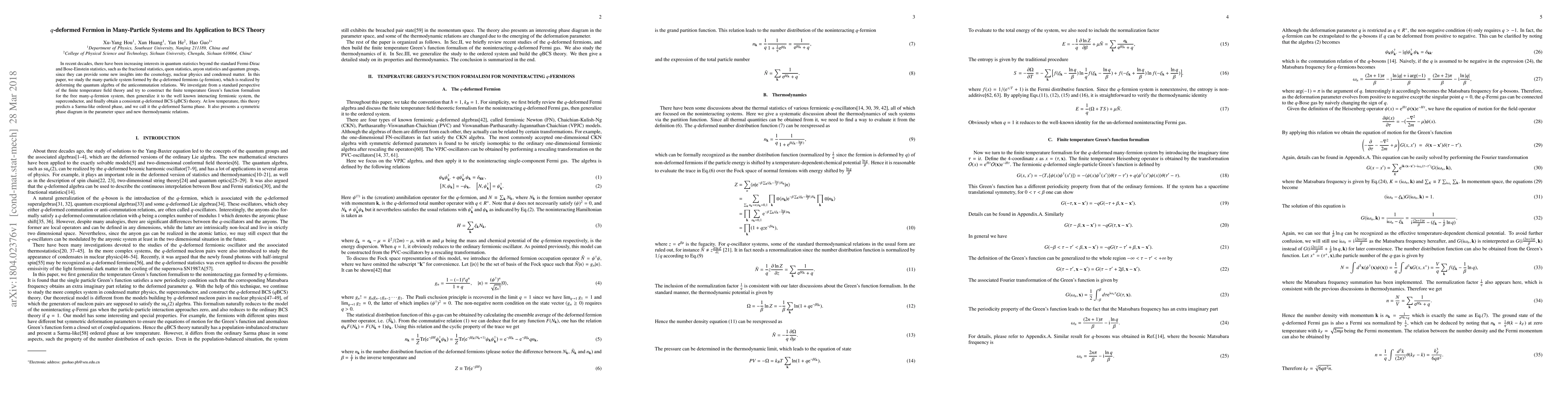 In recent decades, there have been increasing interests in quantum statistics beyond the standard Fermi-Dirac and Bose-Einstein statistics, such as the fractional statistics, quon statistics, anyon statistics and quantum groups, since they can provide some new insights into the cosmology, nuclear physics and condensed matter. In this paper, we study the many-particle system formed by the $q$-deformed fermions ($q$-fermion), which is realized by deforming the quantum algebra of the anticommutation relations. We investigate from a standard perspective of the finite temperature field theory and try to construct the finite temperature Green's function formalism for the free many-$q$-fermion system, then generalize it to the well known interacting fermionic system, the superconductor, and finally obtain a consistent $q$-deformed BCS ($q$BCS) theory. At low temperature, this theory predicts a Sarma-like ordered phase, and we call it the $q$-deformed Sarma phase. It also presents a symmetric phase diagram in the parameter space and new thermodynamic relations.