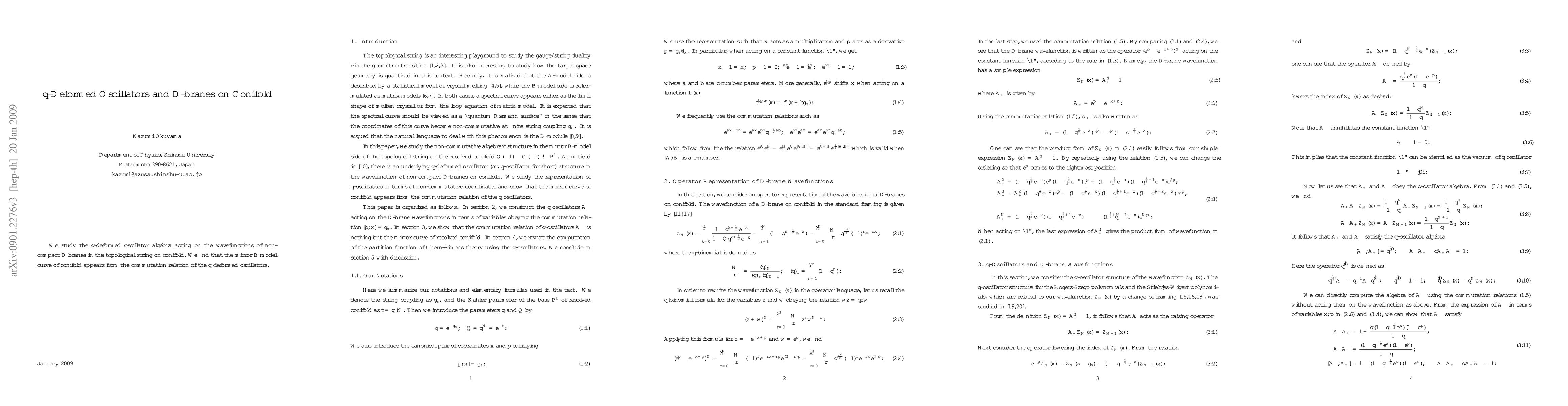 Summary: This research explores the q-deformed oscillator algebra in the context of non-compact D-branes on a conifold, revealing that the mirror B-model curve emerges from the commutation relations of these oscillators.