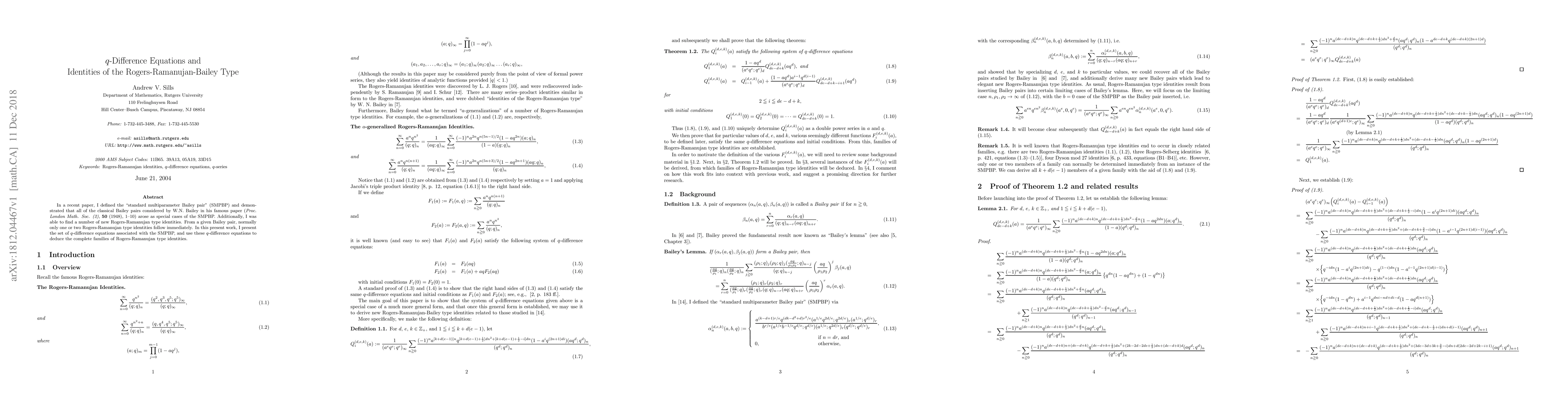 This paper extends the concept of the "standard multiparameter Bailey pair" (SMPBP) to derive $q$-difference equations, which are then used to uncover complete families of Rogers-Ramanujan type identities, extending beyond the classical Bailey pairs.