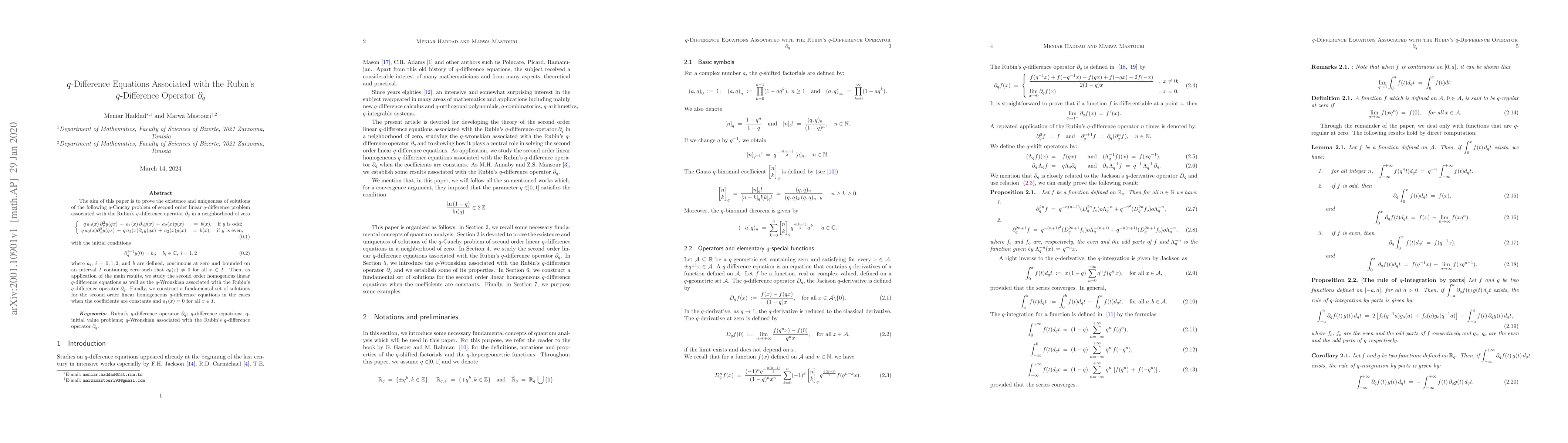 This paper proves the existence and uniqueness of solutions for a second-order linear q-difference equation using Rubin's q-difference operator $\partial_q$. It also explores applications to homogenous linear q-difference equations and constructs a fundamental set of solutions for specific cases.