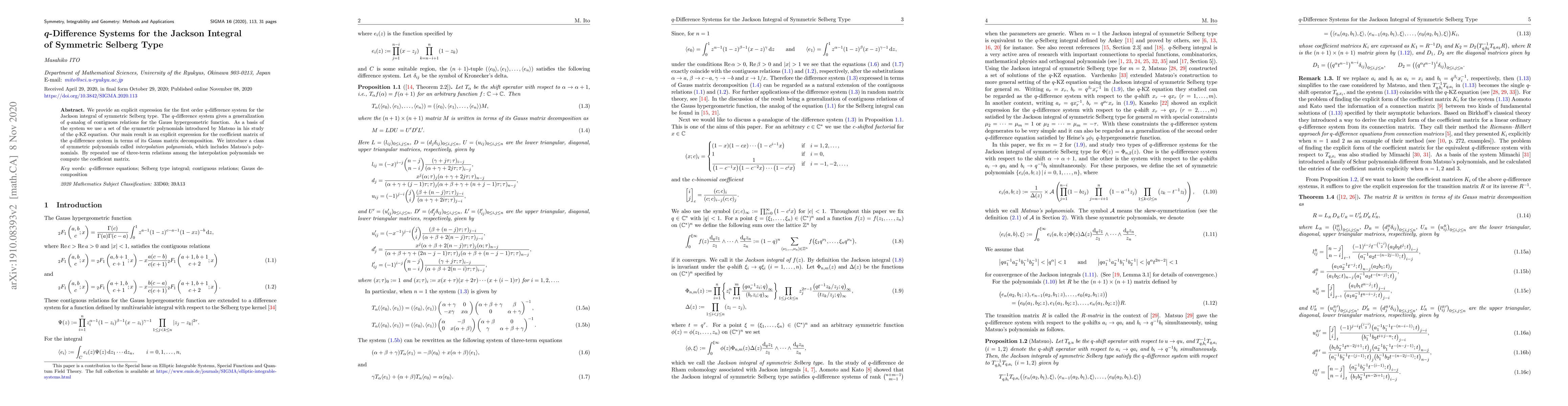 The paper provides an explicit expression for a q-difference system related to the Jackson integral of symmetric Selberg type, generalizing contiguous relations for the Gauss hypergeometric function.