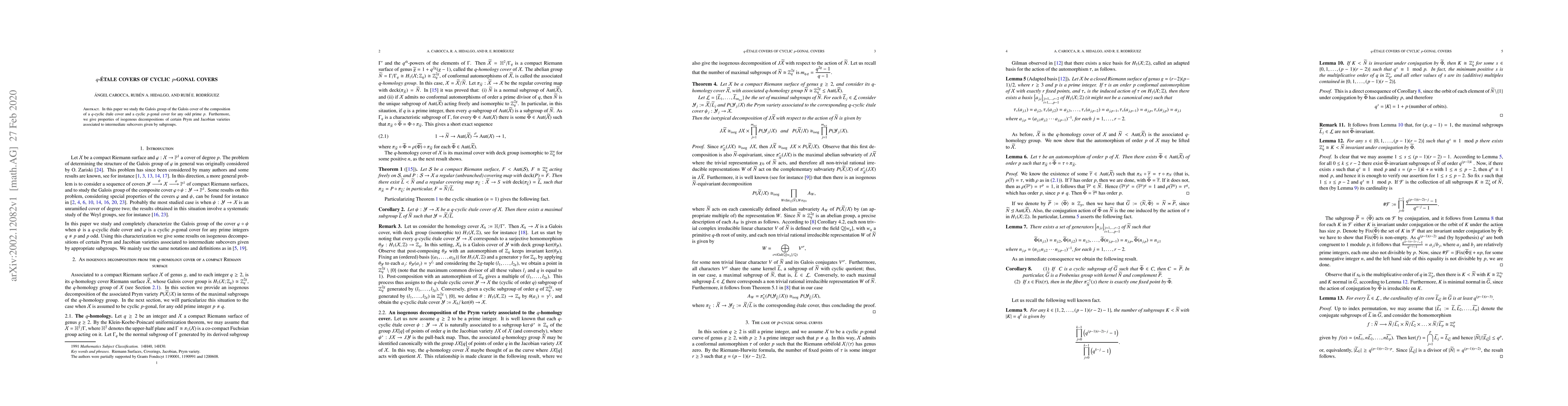 This paper investigates the Galois group of the composite cover formed by a $q$-cyclic \'etale cover and a cyclic $p$-gonal cover for odd prime $p$. It also explores the properties of isogenous decompositions of Prym and Jacobian varieties linked to intermediate subcovers defined by subgroup structures.