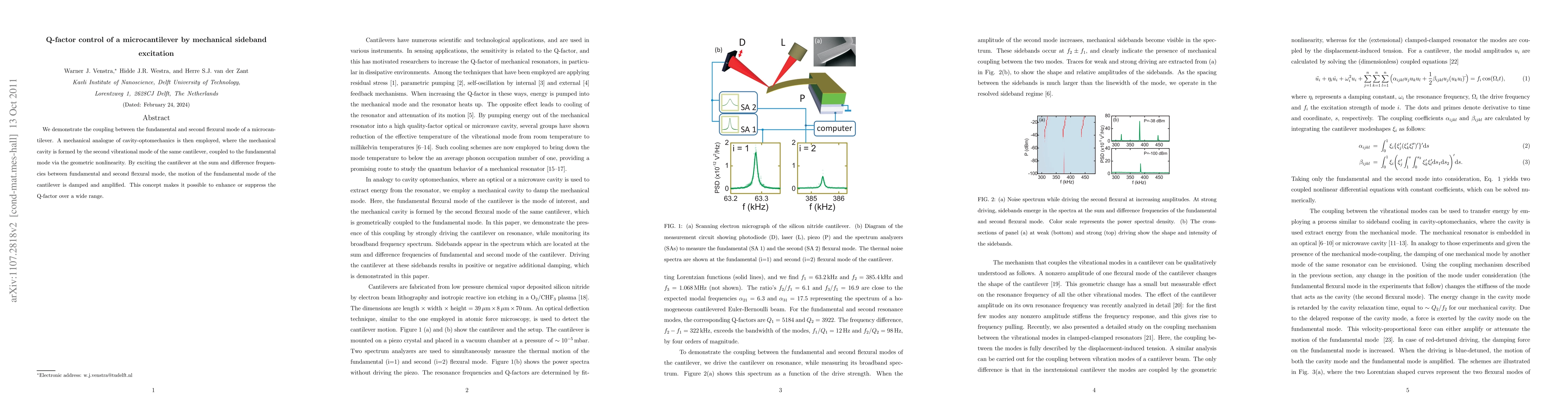 We demonstrate the coupling between the fundamental and second flexural mode of a microcantilever. A mechanical analogue of cavity-optomechanics is then employed, where the mechanical cavity is formed by the second vibrational mode of the same cantilever, coupled to the fundamental mode via the geometric nonlinearity. By exciting the cantilever at the sum and difference frequencies between fundamental and second flexural mode, the motion of the fundamental mode of the cantilever is amplified and damped. This concept makes it possible to enhance or suppress the Q-factor over a wide range.