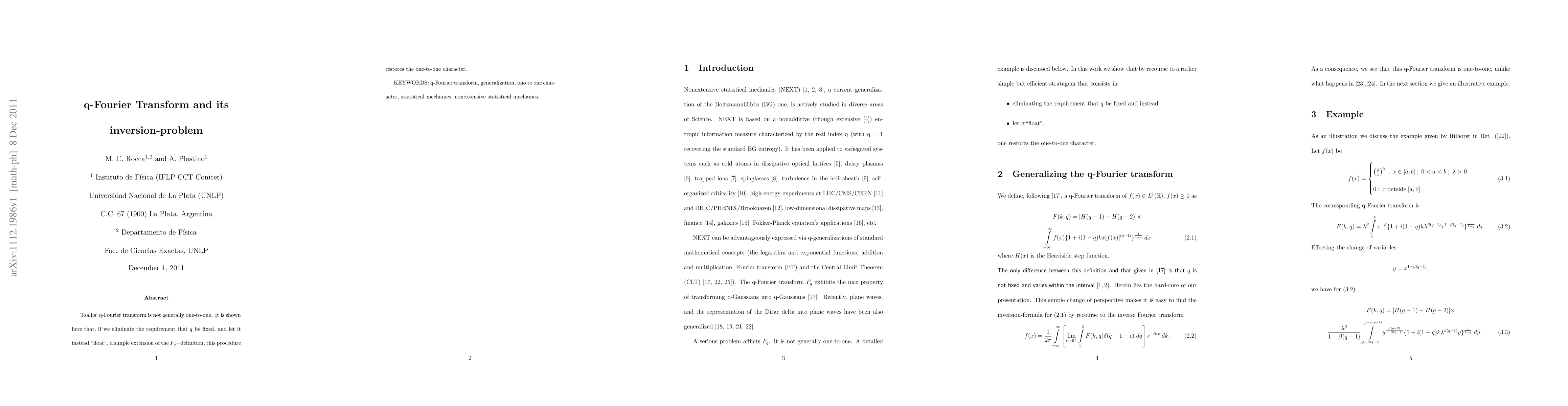 This paper explores the non-one-to-one nature of Tsallis' q-Fourier transform and proposes a method where the parameter $q$ is allowed to vary, thereby restoring the transform's one-to-one characteristic and facilitating its inversion.