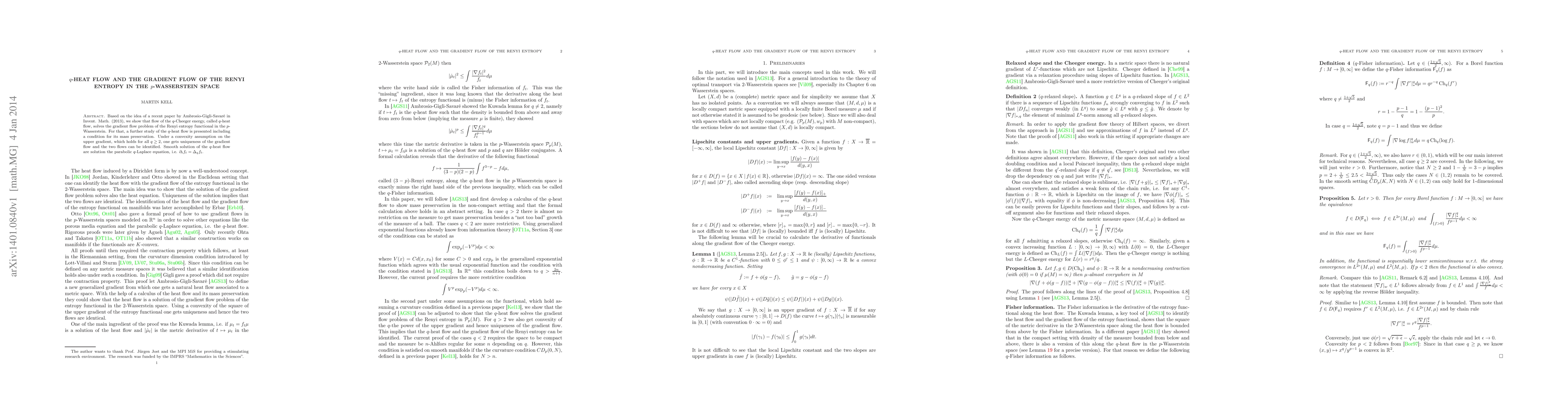 Based on the idea of a recent paper by Ambrosio-Gigli-Savar\'e in Invent. Math. (2013), we show that flow of the $q$-Cheeger energy, called $q$-heat flow, solves the gradient flow problem of the Renyi entropy functional in the $p$-Wasserstein. For that, a further study of the $q$-heat flow is presented including a condition for its mass preservation. Under a convexity assumption on the upper gradient, which holds for all $q\ge2$, one gets uniqueness of the gradient flow and the two flows can be identified. Smooth solution of the $q$-heat flow are solution the parabolic q-Laplace equation, i.e. $\partial_{t}f_{t}=\Delta_{q}f_{t}.$