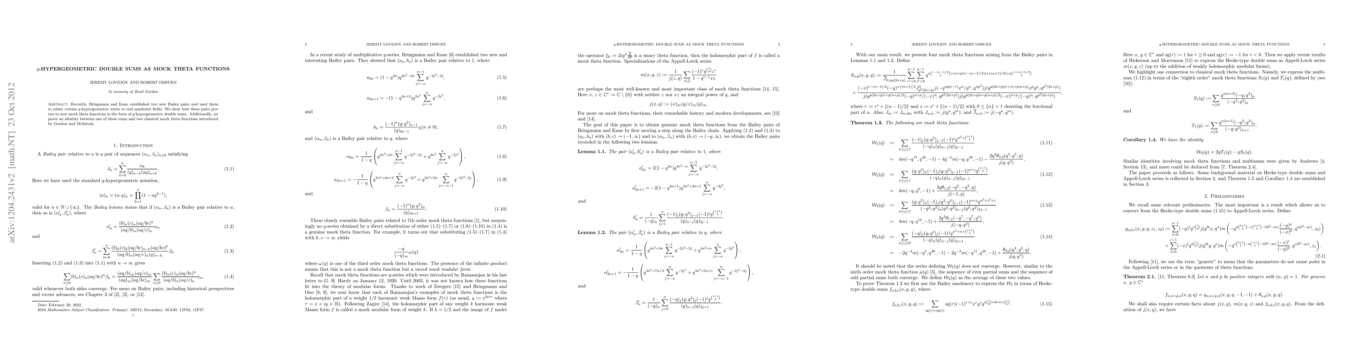 This paper establishes new Bailey pairs that relate q-hypergeometric series to real quadratic fields, showing they generate novel mock theta functions in the form of q-hypergeometric double sums. An identity is also proven linking one of these sums to classical mock theta functions by Gordon and McIntosh.