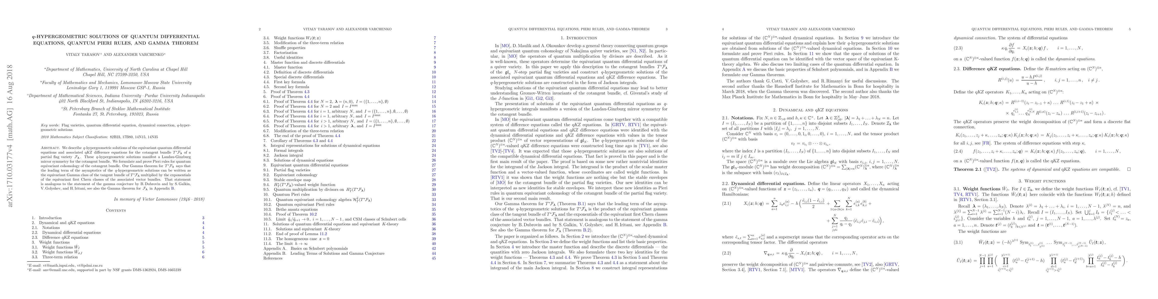 This paper explores $q$-hypergeometric solutions to equivariant quantum differential equations and qKZ difference equations for the cotangent bundle of a partial flag variety, revealing a Landau-Ginzburg mirror symmetry. It also formulates and proves Pieri rules for quantum equivariant cohomology, and establishes a Gamma theorem analogous to the gamma conjecture, linking the asymptotics of $q$-hypergeometric solutions to equivariant Gamma classes and Chern classes.