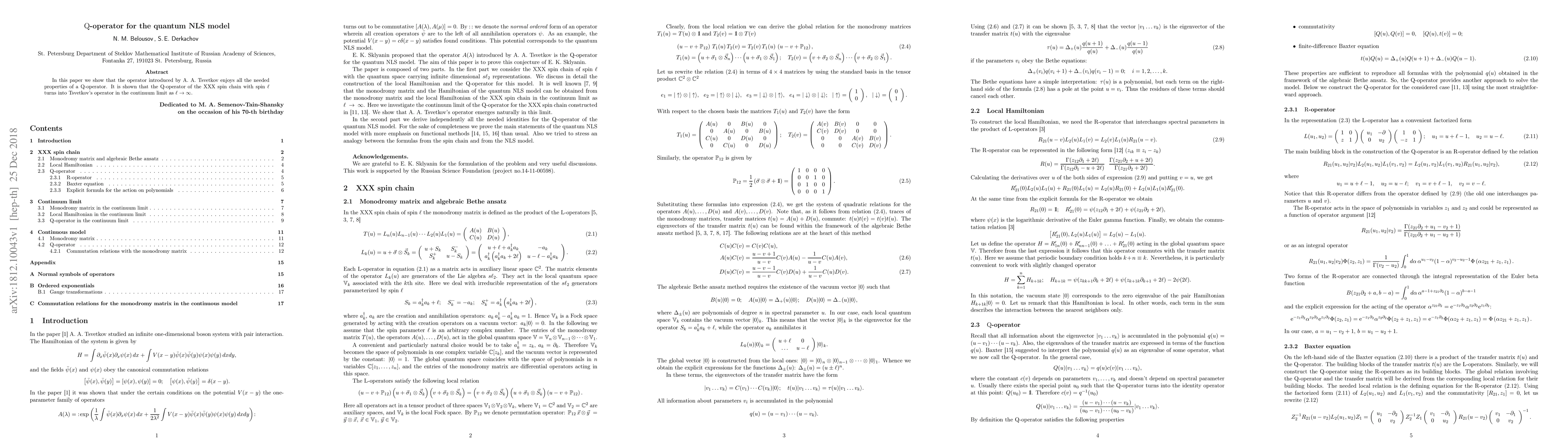 In this paper we show that the operator introduced by A. A. Tsvetkov enjoys all the needed properties of a Q-operator. It is shown that the Q-operator of the XXX spin chain with generic values of spin turns into Tsvetkov's operator in the continuum limit for large spin.