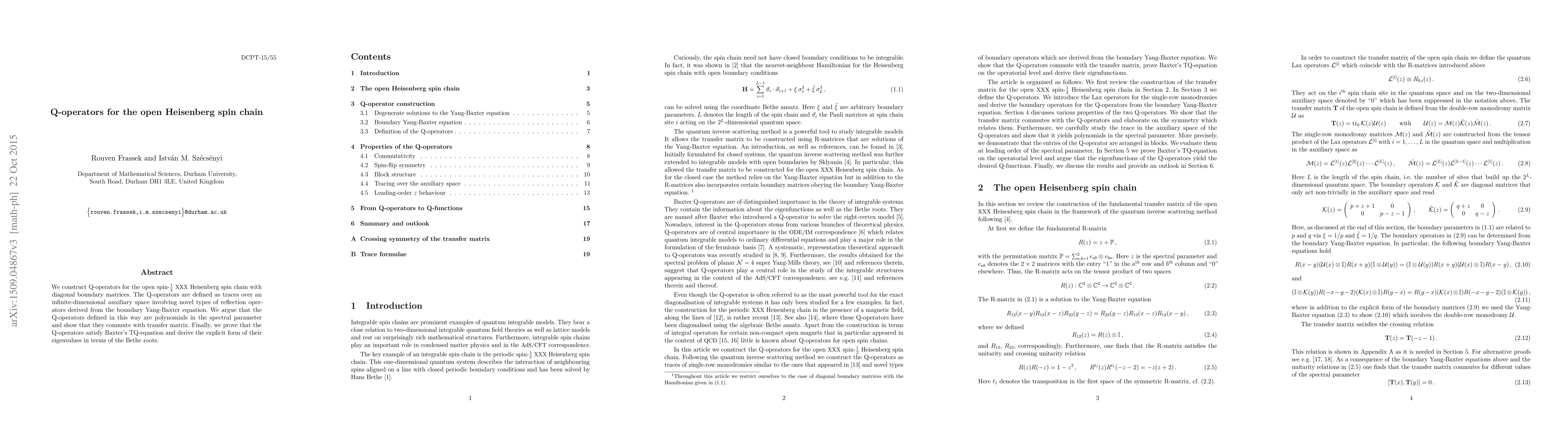 Researchers developed Q-operators for an open Heisenberg spin chain with diagonal boundary matrices, showing they commute with the transfer matrix and satisfy Baxter's TQ-equation.