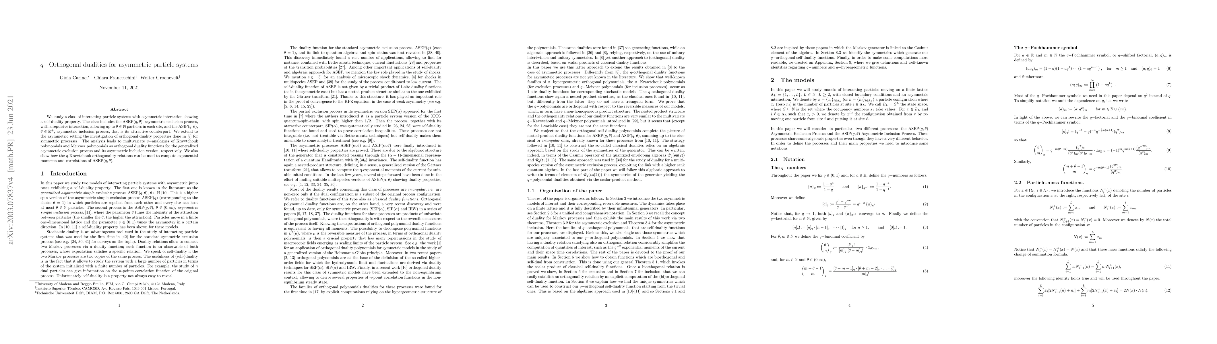 Researchers discovered orthogonal duality functions for asymmetric particle systems, leading to multivariate q-analogues of Krawtchouk and Meixner polynomials, which can be used to compute exponential moments and correlations of ASEP(q,\theta).