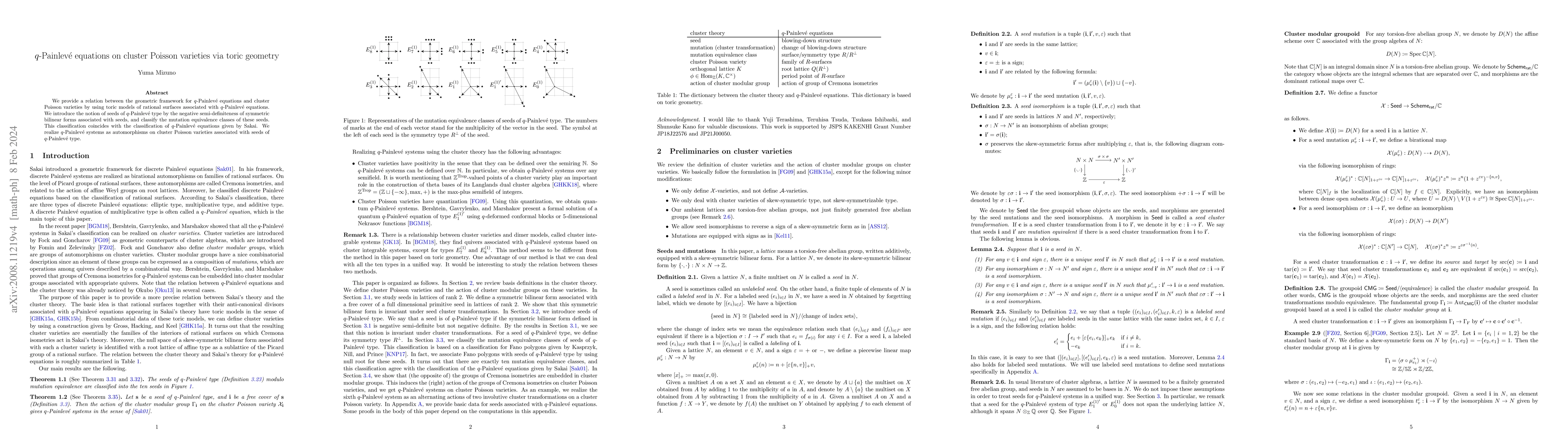 This paper establishes a connection between $q$-Painlevé equations and cluster Poisson varieties through toric geometry, introducing seeds of $q$-Painlevé type and classifying their mutation equivalence classes, which aligns with Sakai’s classification of $q$-Painlevé equations. The study realizes $q$-Painlevé systems as automorphisms on these cluster Poisson varieties.