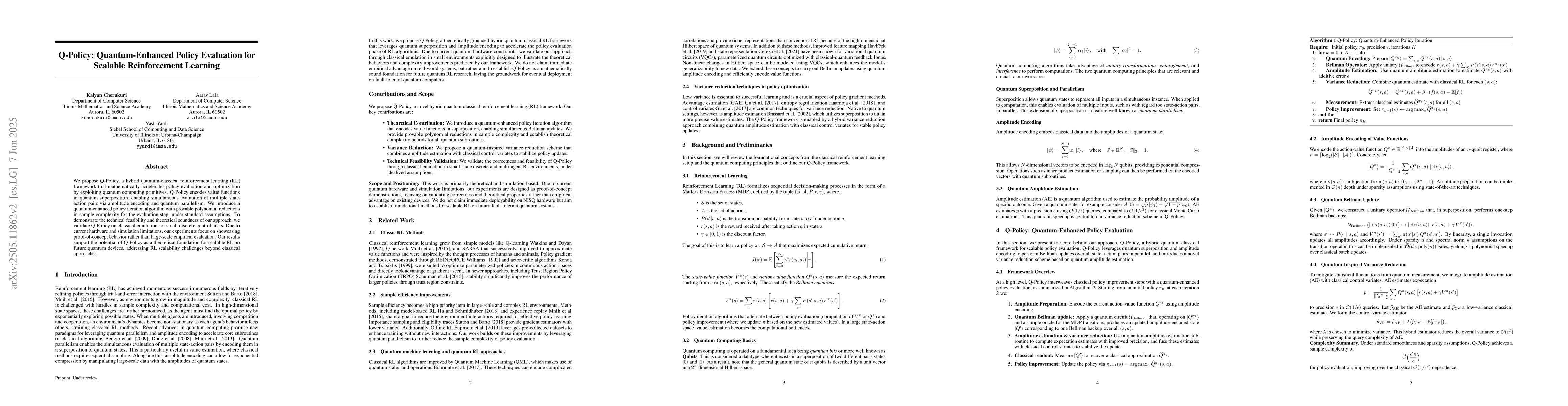 Researchers propose Q-Policy, a hybrid quantum-classical RL framework that accelerates policy evaluation and optimization using quantum computing primitives.