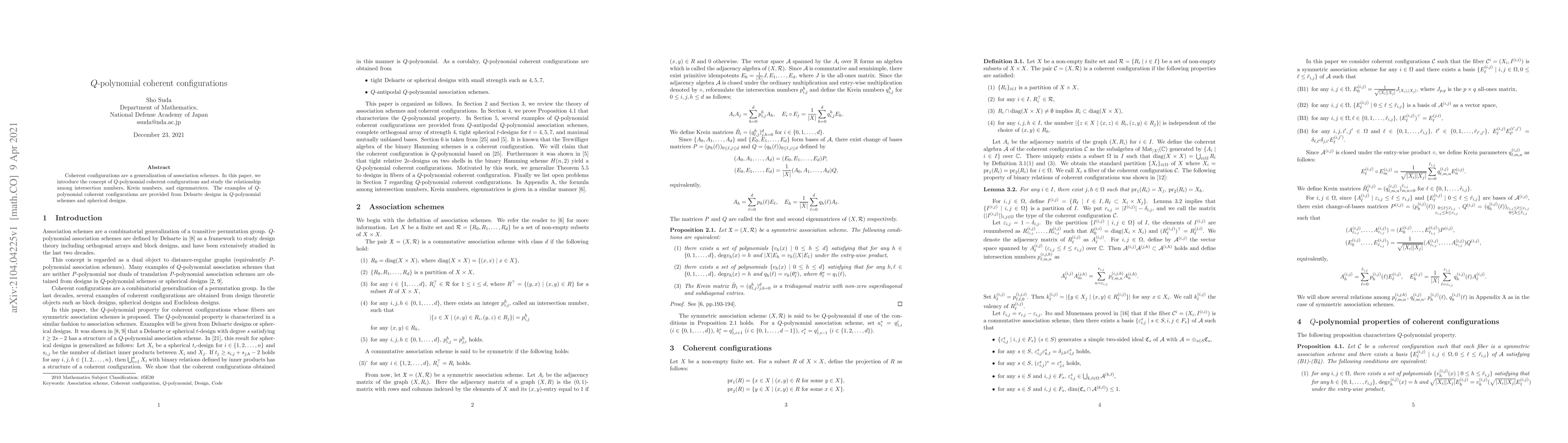 The paper introduces $Q$-polynomial coherent configurations, studying their relationship with intersection numbers, Krein numbers, and eigenmatrices. It provides examples from Delsarte designs in $Q$-polynomial schemes and spherical designs.