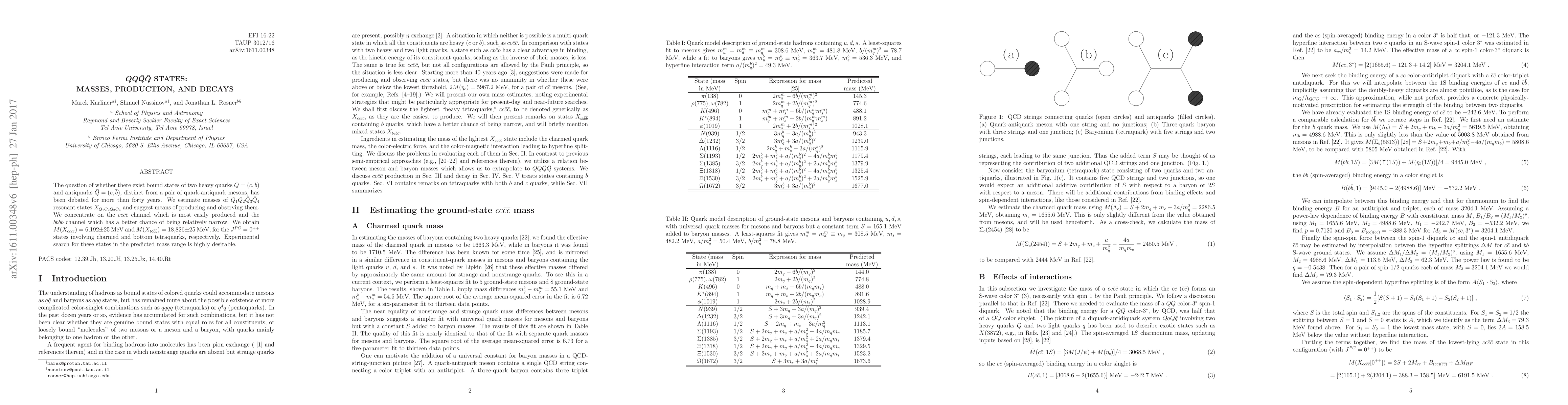 The question of whether there exist bound states of two heavy quarks $Q=(c,b)$ and antiquarks $\bar Q = (\bar c, \bar b)$, distinct from a pair of quark-antiquark mesons, has been debated for more than forty years. We suggest some means of producing and observing $Q_1 Q_2 \bar Q_3 \bar Q_4$ resonant states, concentrating on the $c c \bar c \bar c$ channel which is most easily produced and the $b b \bar b \bar b$ channel which has a better chance of being relatively narrow. We obtain $M_{(cc)(\bar c \bar c)} = 6,192 \pm 25$ MeV and $M_{(bb)(\bar b \bar b)} = 18,826 \pm 25$ MeV, for the charmed and bottom tetraquarks, respectively. Experimental search for these states in the relevant mass region is highly desirable.