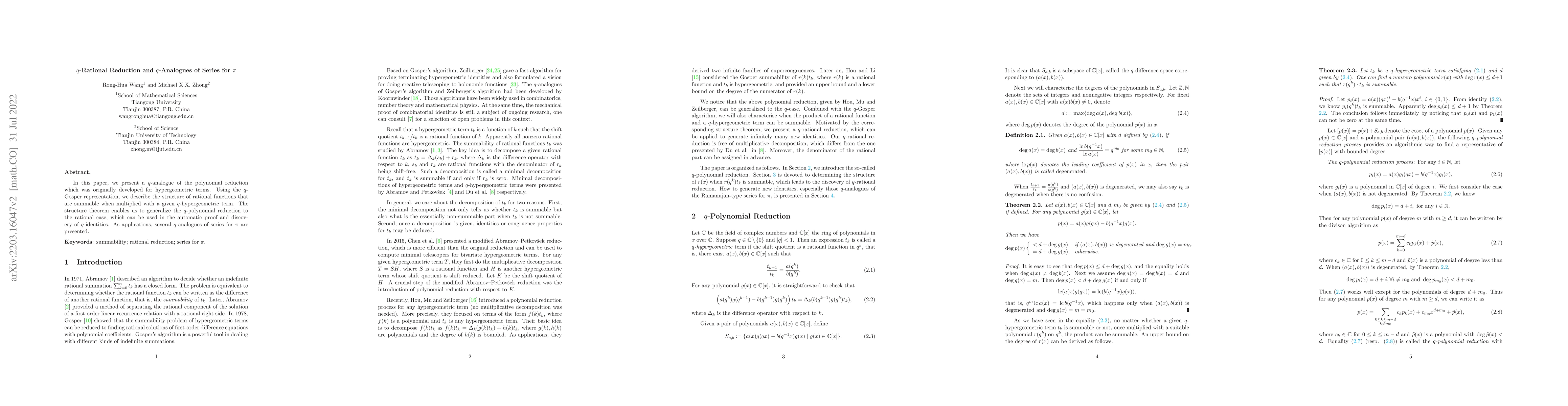 This paper introduces a $q$-analogue of polynomial reduction for hypergeometric terms using the $q$-Gosper representation. It generalizes this reduction to rational functions, facilitating the automatic proof and discovery of $q$-identities, and demonstrates applications in deriving $q$-analogues of series for $\pi$.