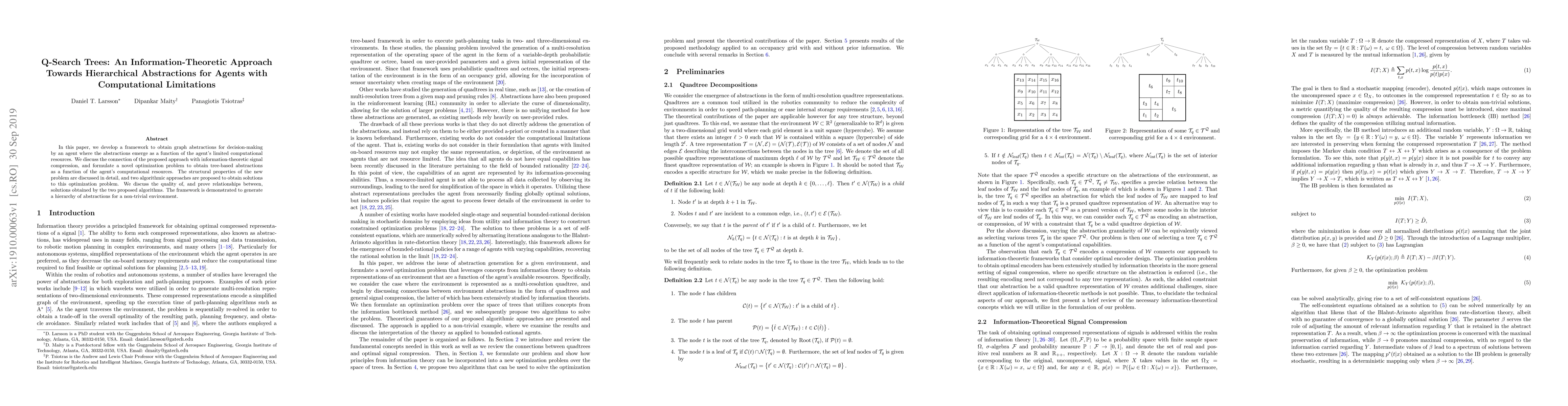 This paper introduces Q-Search Trees, a framework for generating hierarchical abstractions for decision-making agents with limited computational resources, based on information-theoretic signal compression. It proposes an optimization problem and two algorithms to solve it, demonstrating the framework's effectiveness in a non-trivial environment.