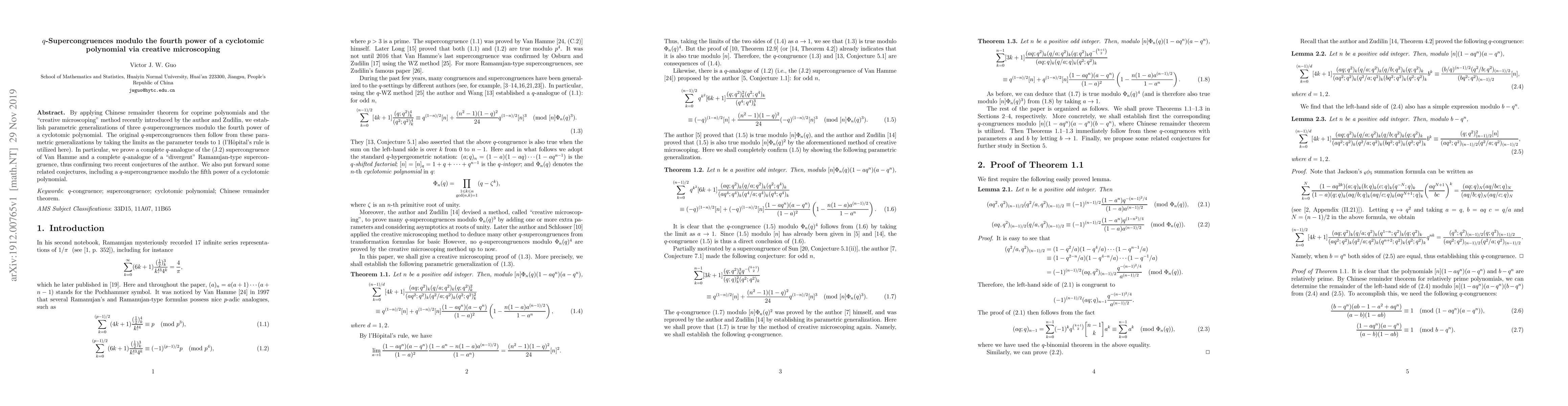 This research uses the Chinese remainder theorem and "creative microscoping" to generalize and prove $q$-supercongruences modulo the fourth power of a cyclotomic polynomial, confirming two conjectures and proposing new related conjectures.