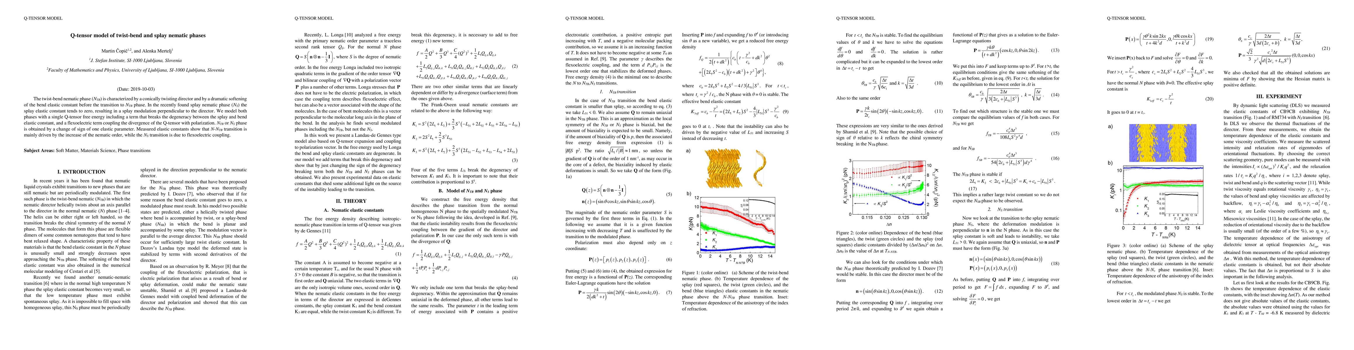 This research introduces a Q-tensor model to describe twist-bend (NTB) and splay (NS) nematic phases, showing how both phases can be captured by a single free energy model with specific terms to differentiate them, and identifies the elastic constants and flexoelectric coupling as key factors in their transitions.