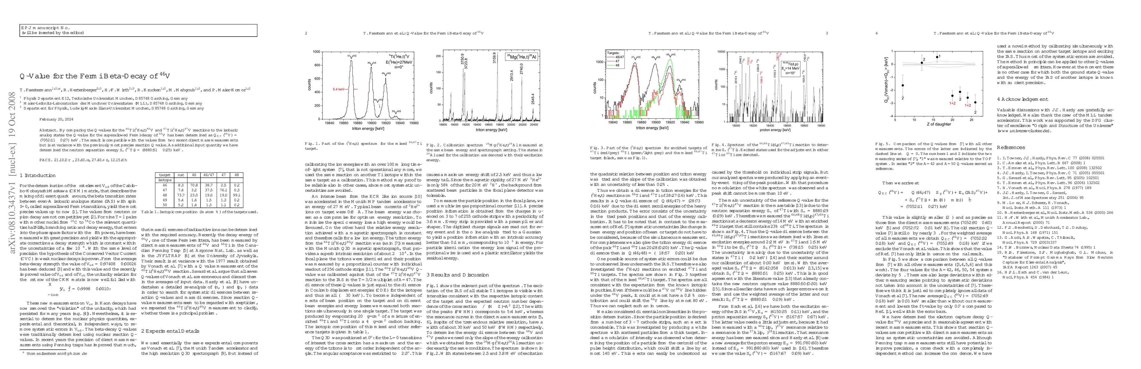 The research paper determines the Q-value for the superallowed Fermi-decay of 46V as (7052.11+/-0.27) keV by comparing Q-values of specific reactions to isobaric analog states. This value is consistent with recent mass measurements but contradicts a previous precise reaction Q-value. Additionally, the study finds the neutron separation energy S_n(47Ti) to be (8880.51+/-0.25) keV.