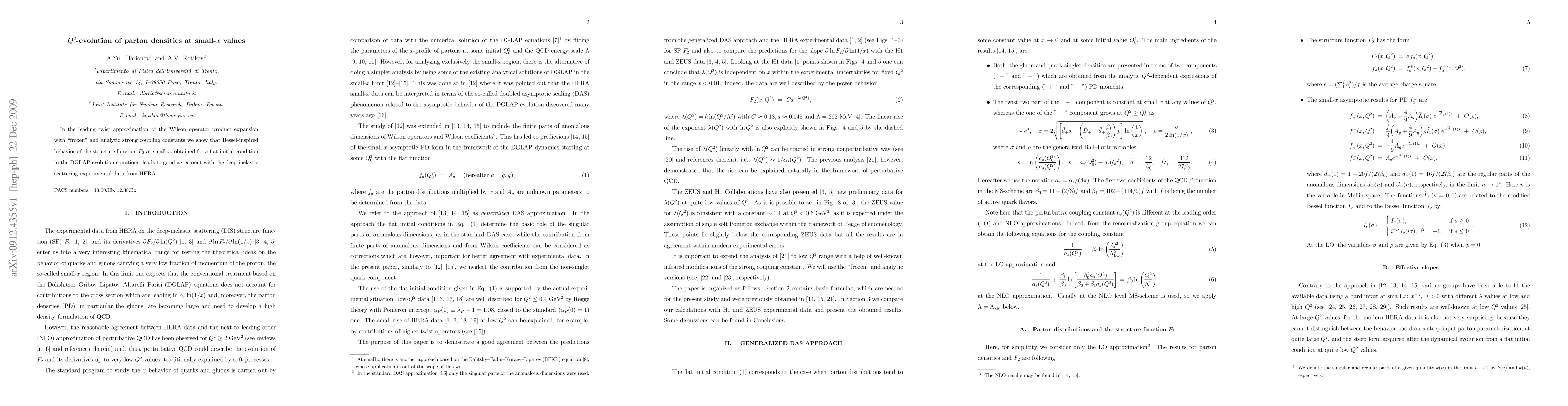 In the leading twist approximation of the Wilson operator product expansion with "frozen" and analytic strong coupling constants we show that Bessel-inspired behavior of the structure function F2 at small x, obtained for a flat initial condition in the DGLAP evolution equations, leads to good agreement with the deep inelastic scattering experimental data from HERA.