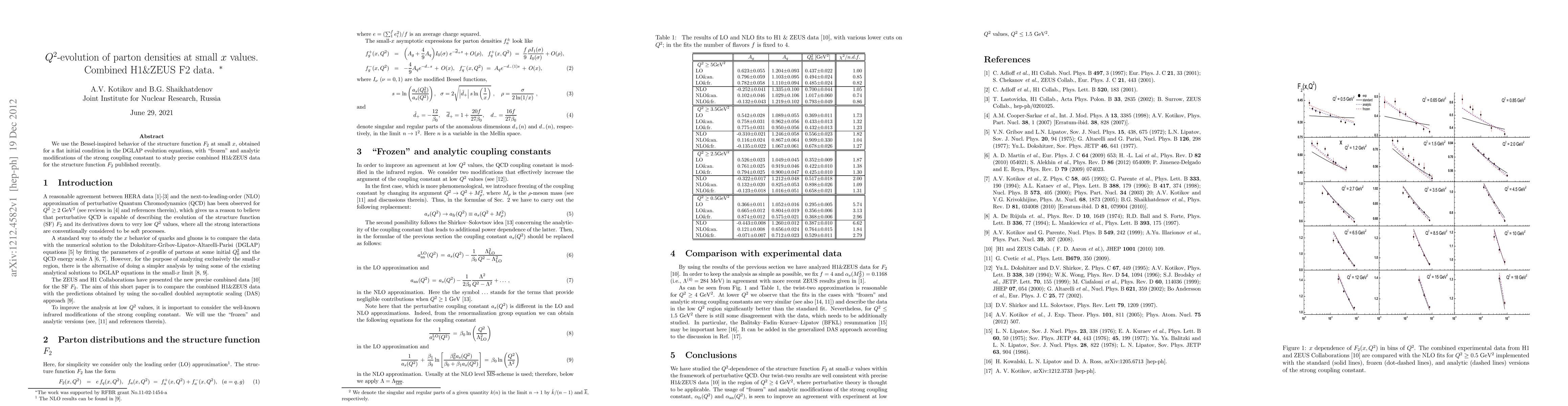 We use the Bessel-inspired behavior of the structure function F2 at small x, obtained for a flat initial condition in the DGLAP evolution equations, with "frozen" and analytic modifications of the strong coupling constant to study precise combined H1 and ZEUS data for the structure function F2 published recently.