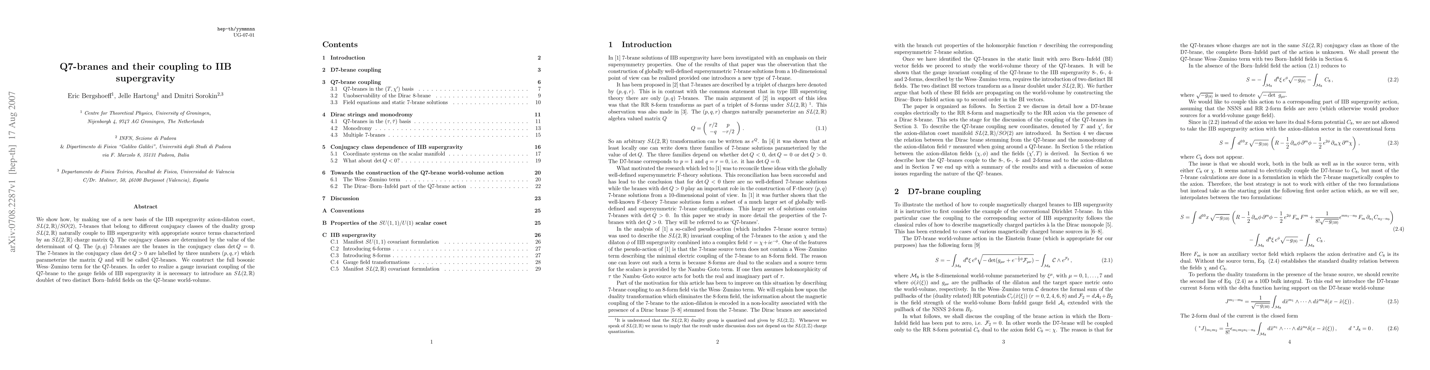 This paper demonstrates how Q7-branes, which belong to different conjugacy classes of the duality group SL(2,R), couple to IIB supergravity through an SL(2,R) charge matrix Q, with their coupling determined by the determinant of Q. It constructs the full Wess-Zumino term for Q7-branes and introduces an SL(2,R) doublet of Born-Infeld fields to achieve gauge-invariant coupling.