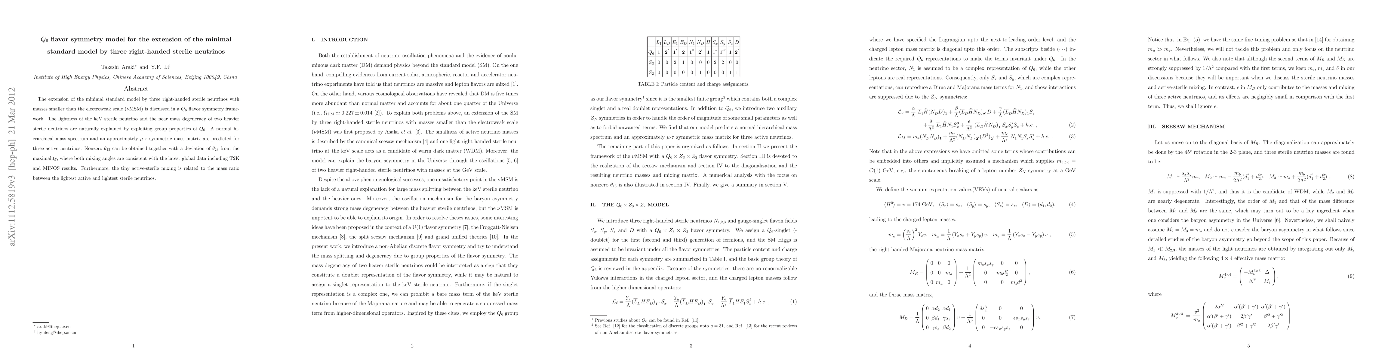 The extension of the minimal standard model by three right-handed sterile neutrinos with masses smaller than the electroweak scale (nuMSM) is discussed in a Q_6 flavor symmetry framework. The lightness of the keV sterile neutrino and the near mass degeneracy of two heavier sterile neutrinos are naturally explained by exploiting group properties of Q_6. A normal hierarchical mass spectrum and an approximately mu-tau symmetric mass matrix are predicted for three active neutrinos. Nonzero theta_{13} can be obtained together with a deviation of theta_{23} from the maximality, where both mixing angles are consistent with the latest global data including T2K and MINOS results. Furthermore, the tiny active-sterile mixing is related to the mass ratio between the lightest active and lightest sterile neutrinos.