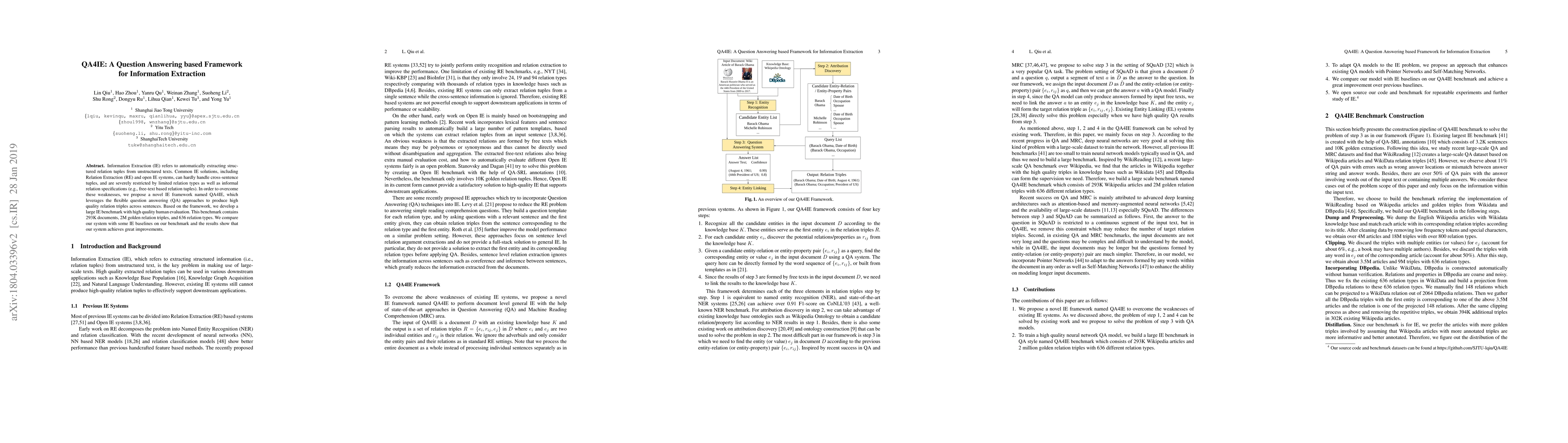 A novel IE framework called QA4IE leverages question answering to produce high-quality relation triples across sentences, overcoming limitations of traditional IE solutions.