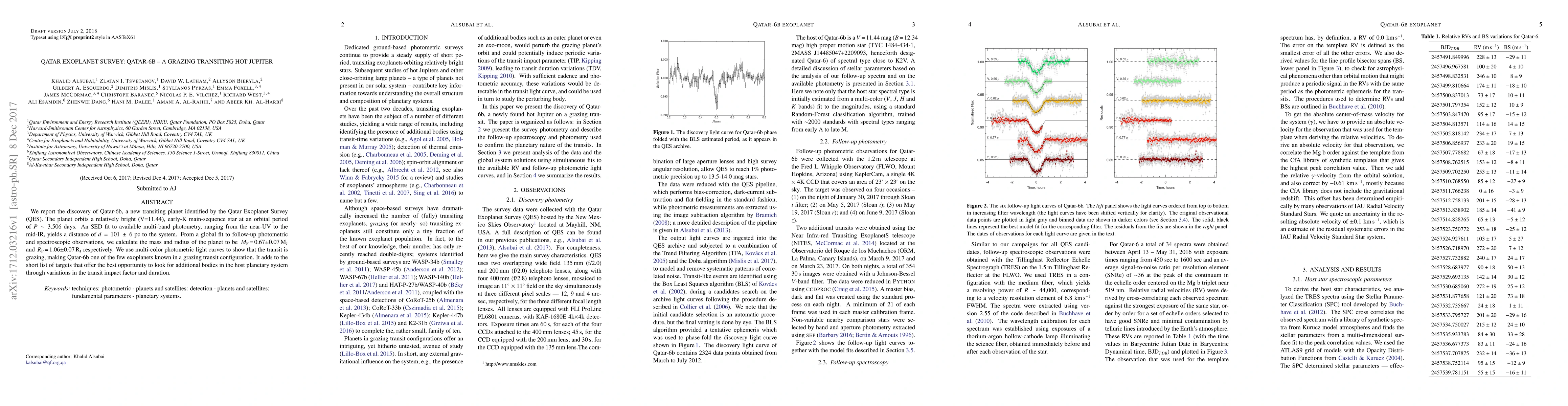 The Qatar Exoplanet Survey discovered Qatar-6b, a grazing transiting hot Jupiter with a mass of 0.67 Mjup and radius of 1.06 Rjup, orbiting a bright early-K star every 3.506 days. Its grazing transit makes it a prime target for studying additional planetary bodies in the system.