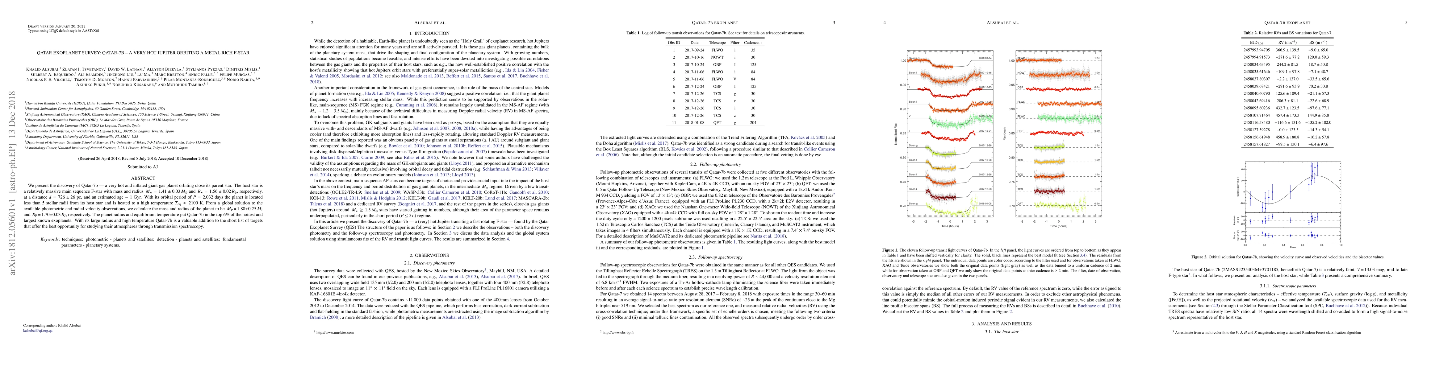 Qatar-7b is a very hot and inflated gas giant orbiting a metal-rich F-star, with a radius and equilibrium temperature placing it among the hottest and largest known exoplanets, making it a prime candidate for atmospheric studies.
