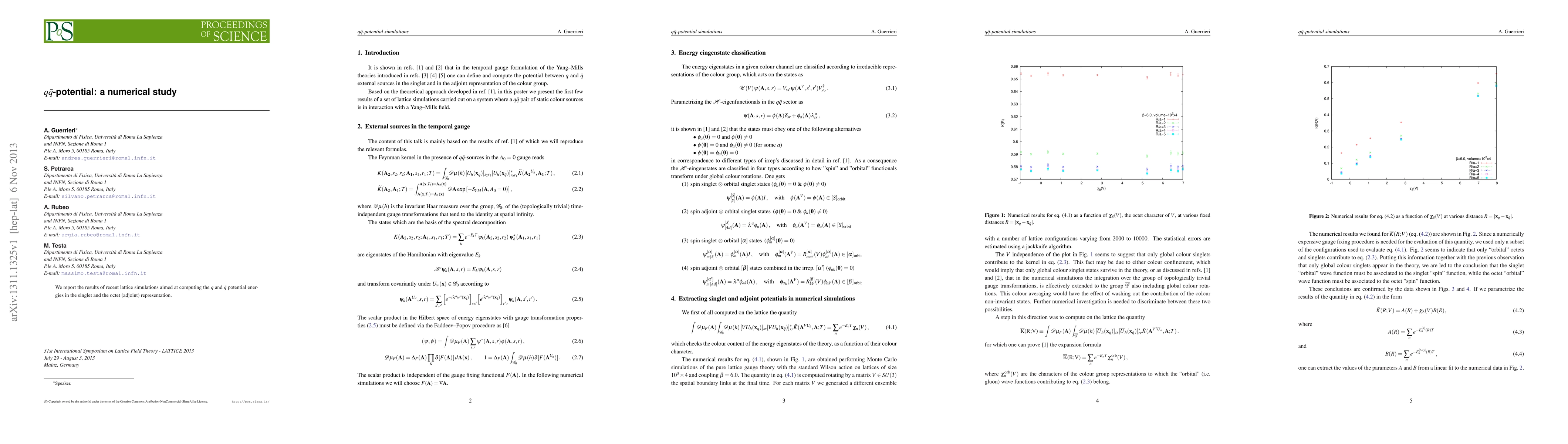 Summary: This paper presents numerical results from lattice simulations to compute the potential energies between a quark ($q$) and an antiquark ($\bar q$) in singlet and octet representations, providing insights into the underlying strong force interactions.