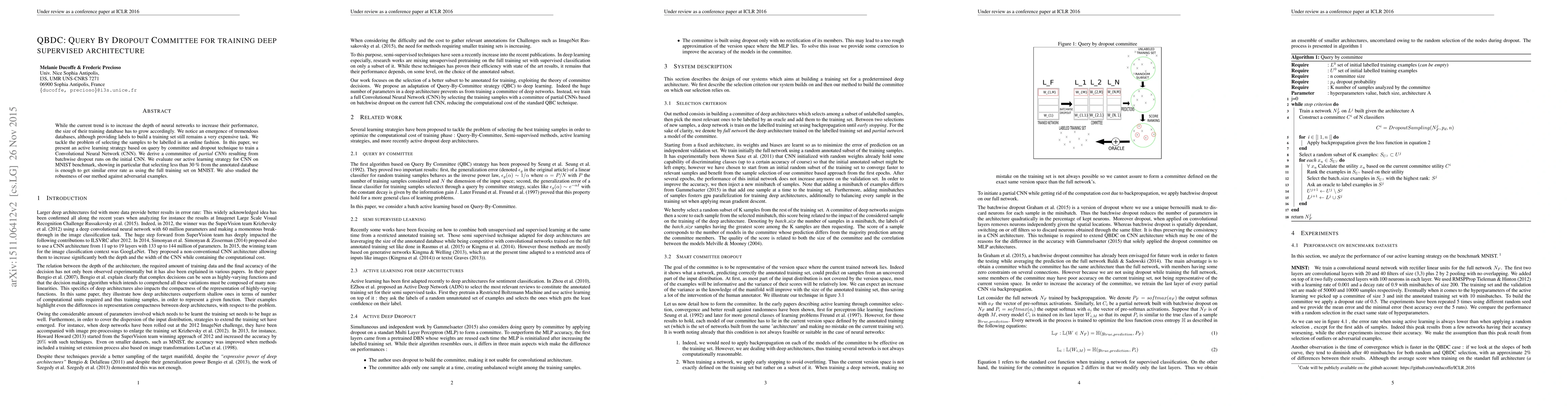 While the current trend is to increase the depth of neural networks to increase their performance, the size of their training database has to grow accordingly. We notice an emergence of tremendous databases, although providing labels to build a training set still remains a very expensive task. We tackle the problem of selecting the samples to be labelled in an online fashion. In this paper, we present an active learning strategy based on query by committee and dropout technique to train a Convolutional Neural Network (CNN). We derive a commmittee of partial CNNs resulting from batchwise dropout runs on the initial CNN. We evaluate our active learning strategy for CNN on MNIST benchmark, showing in particular that selecting less than 30 % from the annotated database is enough to get similar error rate as using the full training set on MNIST. We also studied the robustness of our method against adversarial examples.