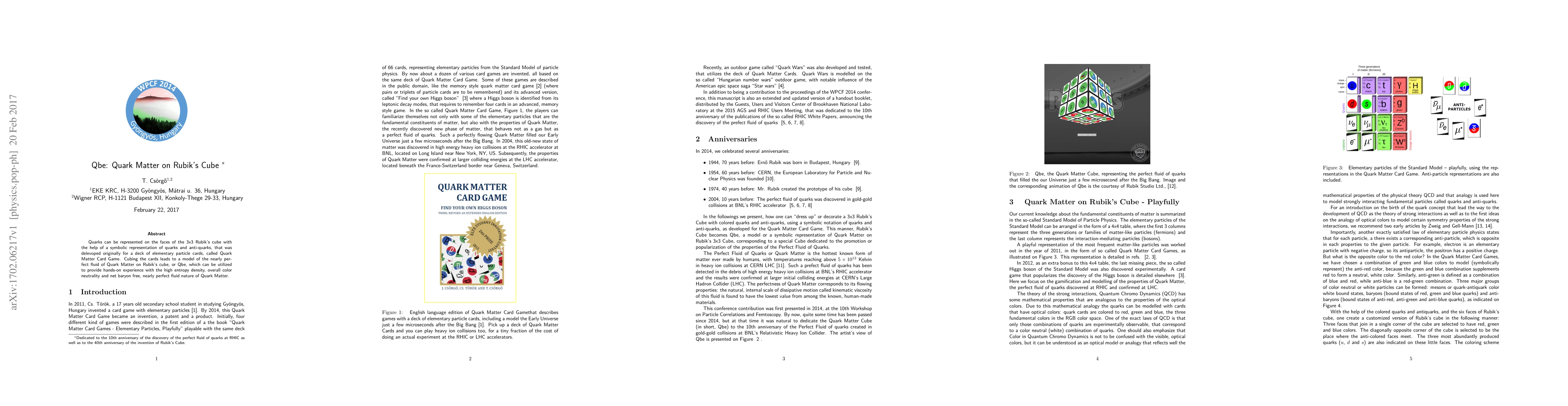 This paper proposes a novel method to represent quarks on a 3x3 Rubik's cube using a symbolic representation from the Quark Matter Card Game, creating a model called Qbe. This model offers a tangible way to understand the properties of Quark Matter, including high entropy density, color neutrality, and baryon freedom.