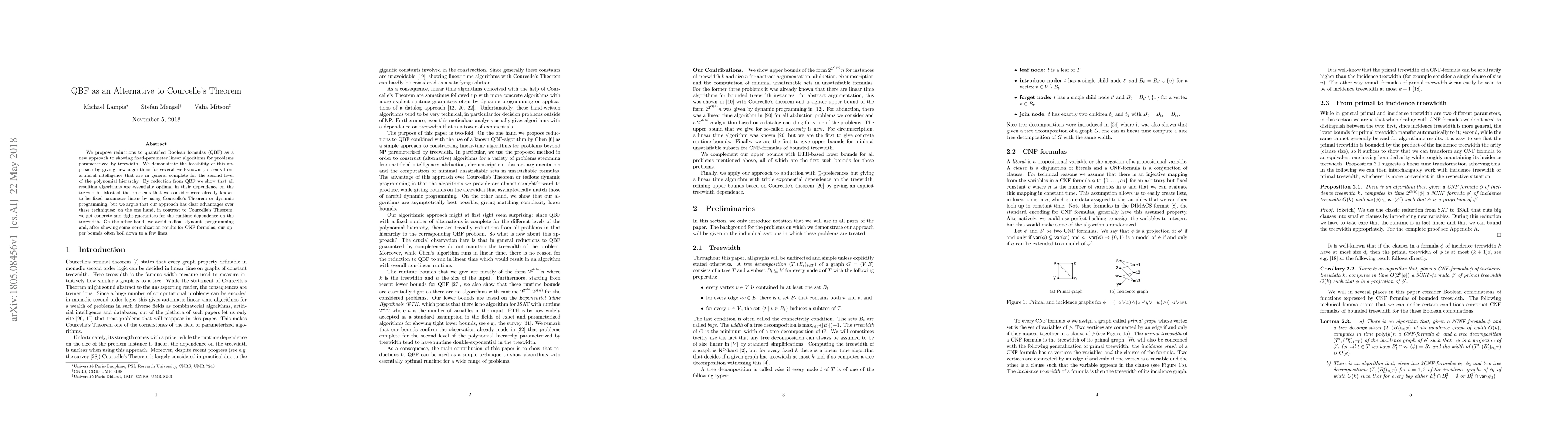 We propose reductions to quantified Boolean formulas (QBF) as a new approach to showing fixed-parameter linear algorithms for problems parameterized by treewidth. We demonstrate the feasibility of this approach by giving new algorithms for several well-known problems from artificial intelligence that are in general complete for the second level of the polynomial hierarchy. By reduction from QBF we show that all resulting algorithms are essentially optimal in their dependence on the treewidth. Most of the problems that we consider were already known to be fixed-parameter linear by using Courcelle's Theorem or dynamic programming, but we argue that our approach has clear advantages over these techniques: on the one hand, in contrast to Courcelle's Theorem, we get concrete and tight guarantees for the runtime dependence on the treewidth. On the other hand, we avoid tedious dynamic programming and, after showing some normalization results for CNF-formulas, our upper bounds often boil down to a few lines.