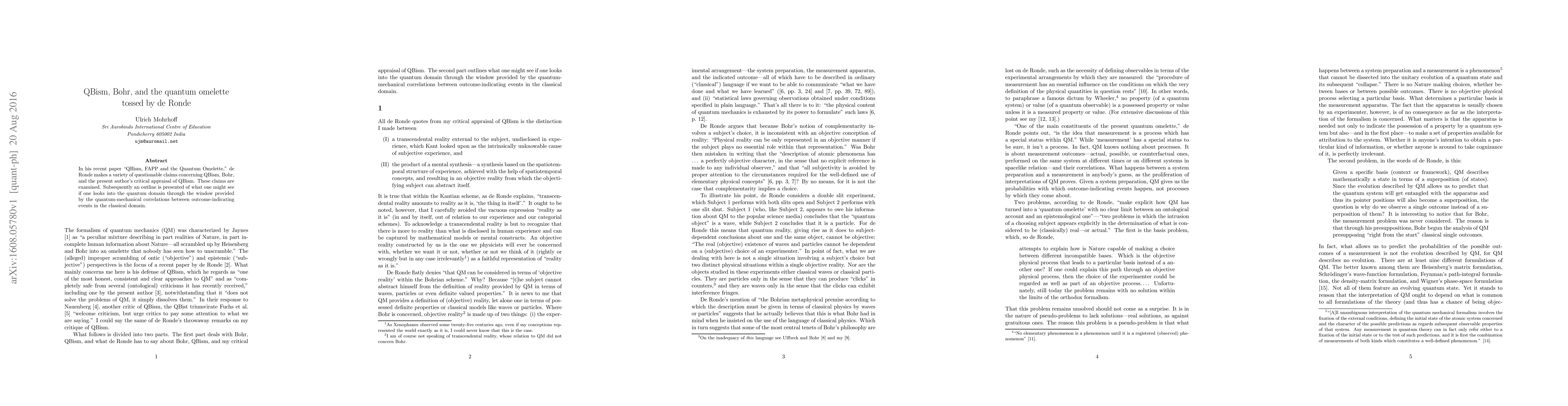 In his recent paper "QBism, FAPP and the Quantum Omelette" [1608.00548v1] de Ronde makes a variety of questionable claims concerning QBism, Bohr, and the present author's critical appraisal of QBism [1409.3312v1]. These claims are examined. Subsequently an outline is presented of what one might see if one looks into the quantum domain through the window provided by the quantum-mechanical correlations between outcome-indicating events in the classical domain.