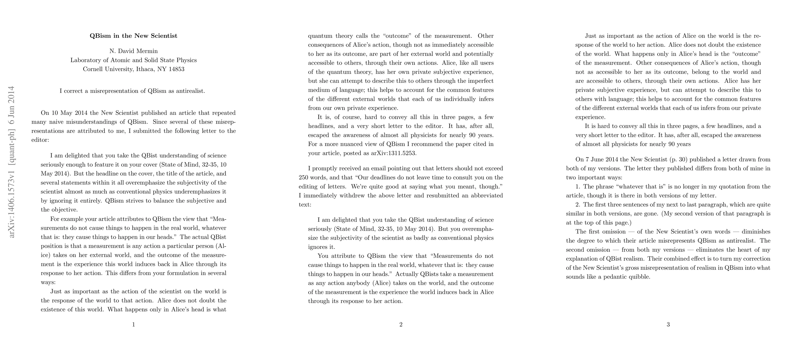 I correct a misrepresentation of QBism as antirealist.