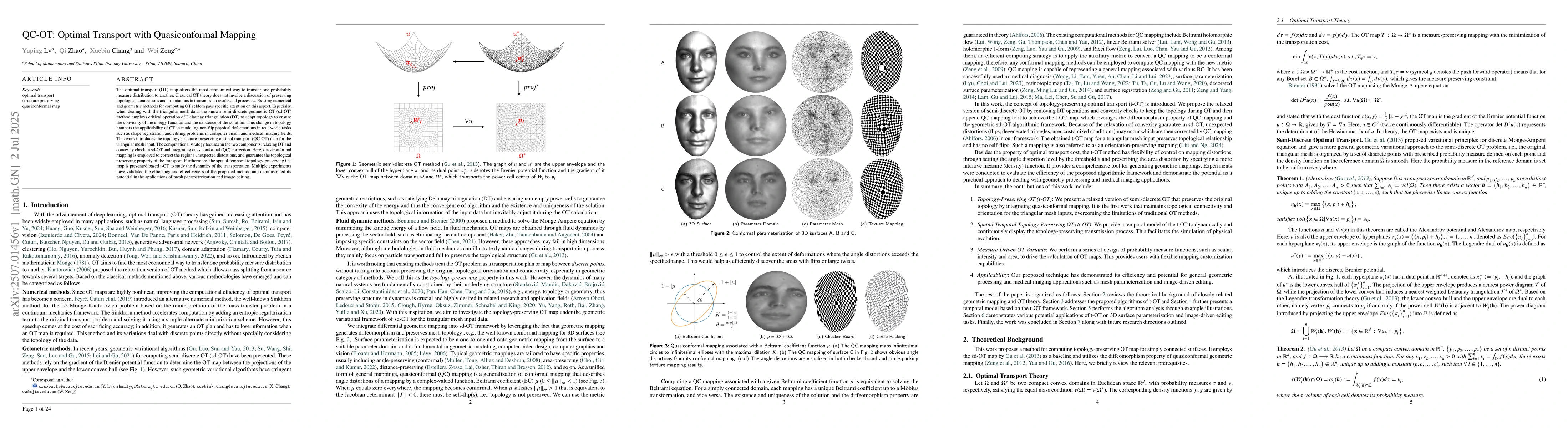 The research introduces QC-OT, a topology structure-preserving optimal transport method for triangular mesh input, addressing the limitation of existing methods in preserving topological connections and orientations. It integrates quasiconformal mapping to correct distortions and maintain topological properties, demonstrating efficiency in mesh parameterization and image editing applications.