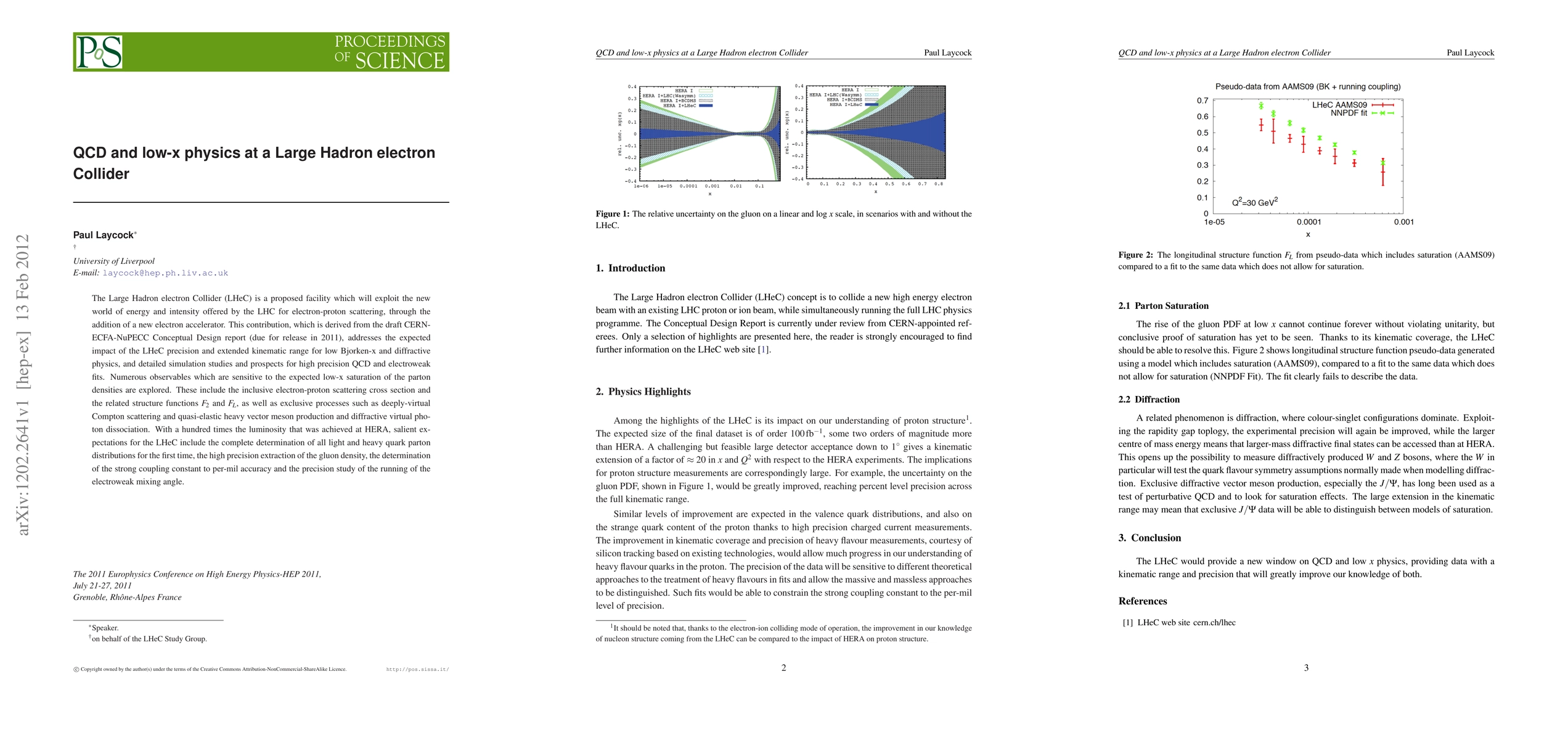 The Large Hadron electron Collider (LHeC) is a proposed facility which will exploit the new world of energy and intensity offered by the LHC for electron-proton scattering, through the addition of a new electron accelerator. This contribution, which is derived from the draft CERN-ECFA-NuPECC Conceptual Design report (due for release in 2012), addresses the expected impact of the LHeC precision and extended kinematic range for low Bjorken-x and diffractive physics, and detailed simulation studies and prospects for high precision QCD and electroweak fits. Numerous observables which are sensitive to the expected low-x saturation of the parton densities are explored. These include the inclusive electron-proton scattering cross section and the related structure functions $F_2$ and $F_L$, as well as exclusive processes such as deeply-virtual Compton scattering and quasi-elastic heavy vector meson production and diffractive virtual photon dissociation. With a hundred times the luminosity that was achieved at HERA, salient expectations for the LHeC include the complete determination of all light and heavy quark parton distributions for the first time, the high precision extraction of the gluon density, the determination of the strong coupling constant to per-mil accuracy and the precision study of the running of the electroweak mixing angle.