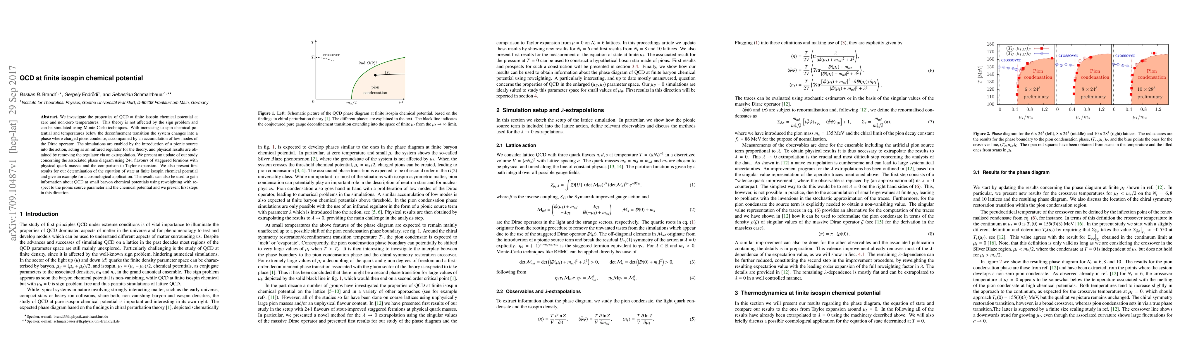 We investigate the properties of QCD at finite isospin chemical potential at zero and non-zero temperatures. This theory is not affected by the sign problem and can be simulated using Monte-Carlo techniques. With increasing isospin chemical potential and temperatures below the deconfinement transition the system changes into a phase where charged pions condense, accompanied by an accumulation of low modes of the Dirac operator. The simulations are enabled by the introduction of a pionic source into the action, acting as an infrared regulator for the theory, and physical results are obtained by removing the regulator via an extrapolation. We present an update of our study concerning the associated phase diagram using 2+1 flavours of staggered fermions with physical quark masses and the comparison to Taylor expansion. We also present first results for our determination of the equation of state at finite isospin chemical potential and give an example for a cosmological application. The results can also be used to gain information about QCD at small baryon chemical potentials using reweighting with respect to the pionic source parameter and the chemical potential and we present first steps in this direction.