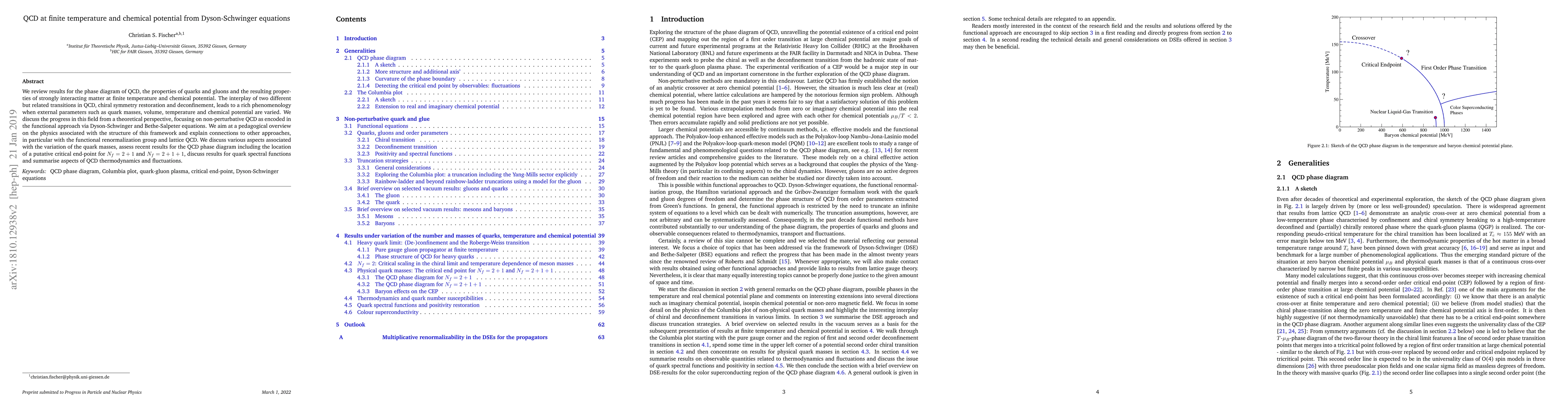 This paper reviews the phase diagram of QCD at finite temperature and chemical potential, focusing on the interplay between chiral symmetry restoration and deconfinement. It discusses theoretical advancements using Dyson-Schwinger and Bethe-Salpeter equations, highlighting the critical endpoint and thermodynamic properties of strongly interacting matter.