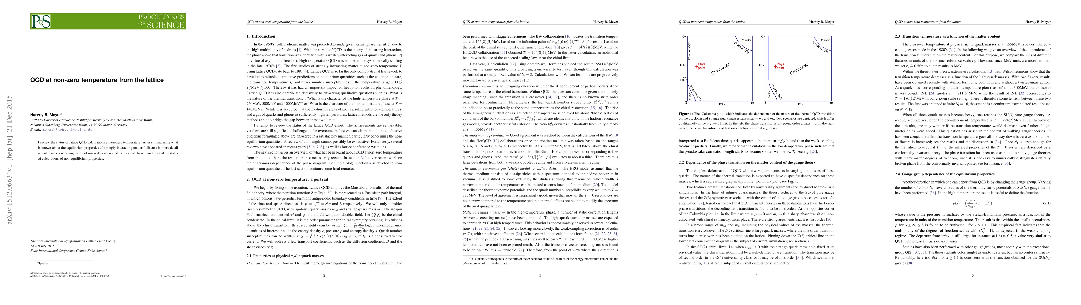 I review the status of lattice QCD calculations at non-zero temperature. After summarizing what is known about the equilibrium properties of strongly interacting matter, I discuss in more detail recent results concerning the quark-mass dependence of the thermal phase transition and the status of calculations of non-equilibrium properties.