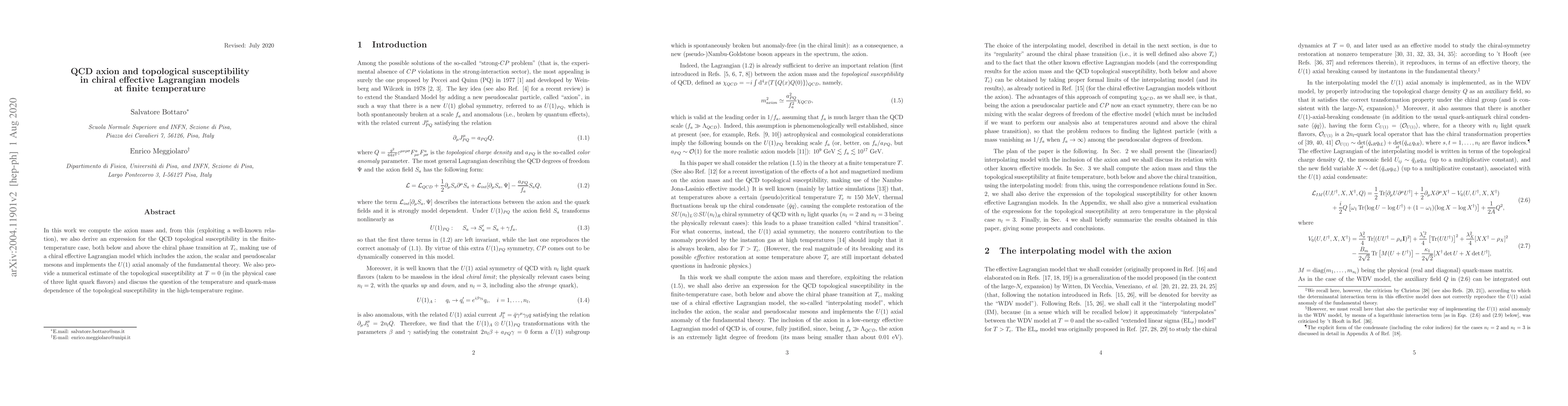 This study calculates the axion mass and derives the QCD topological susceptibility in finite-temperature scenarios using a chiral effective Lagrangian model. It provides a numerical estimate for the topological susceptibility at $T=0$ and explores its temperature and quark-mass dependence above the chiral phase transition.
